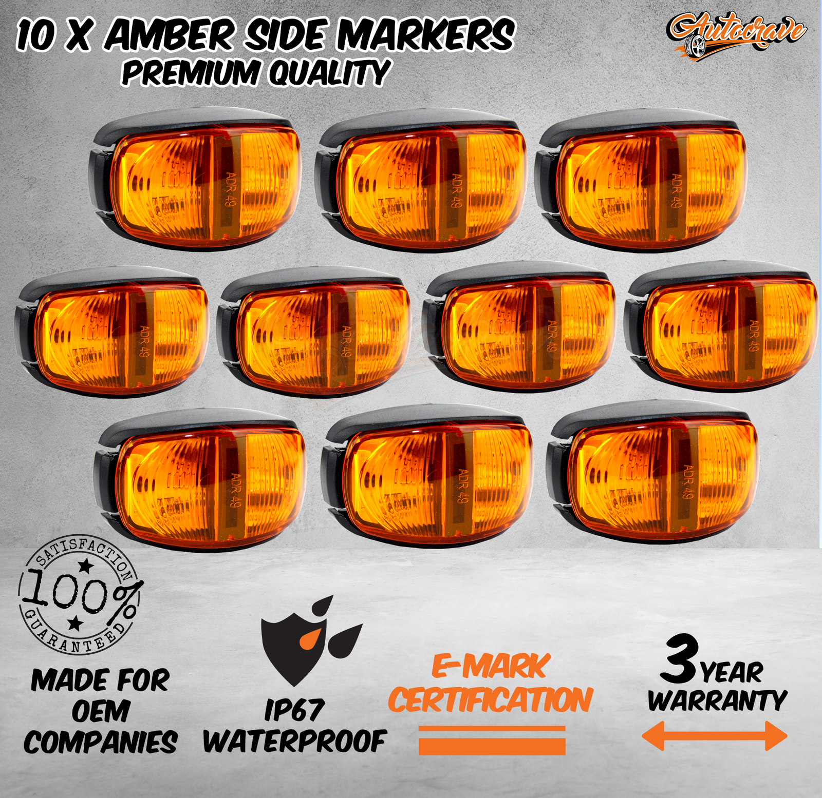 • 10 x AMBER SIDE MARKERS (Back Screw Type with Nuts)