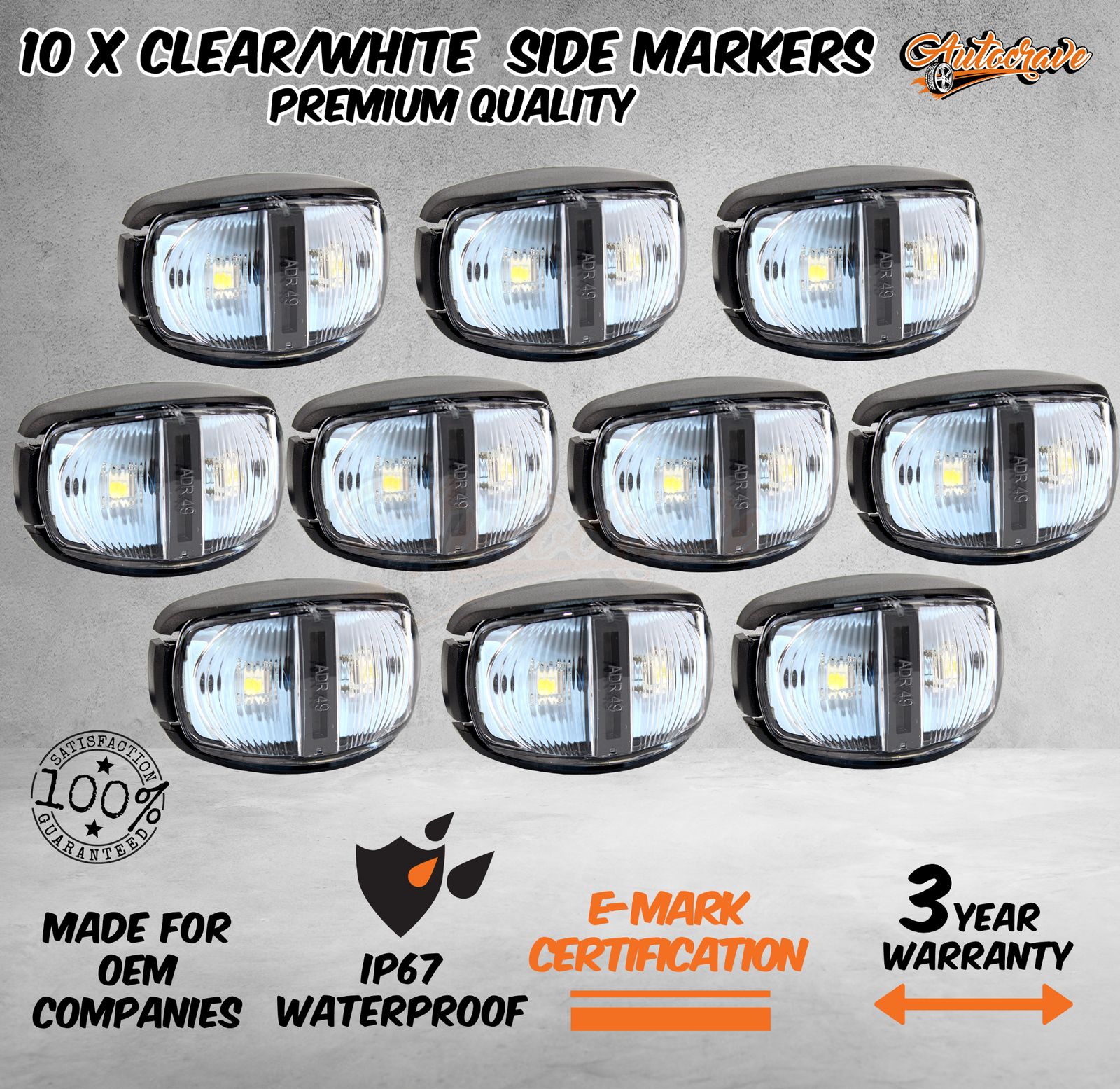 • 10 x ClEAR/WHITE SIDE MARKERS (Back Screw Type with Nuts)