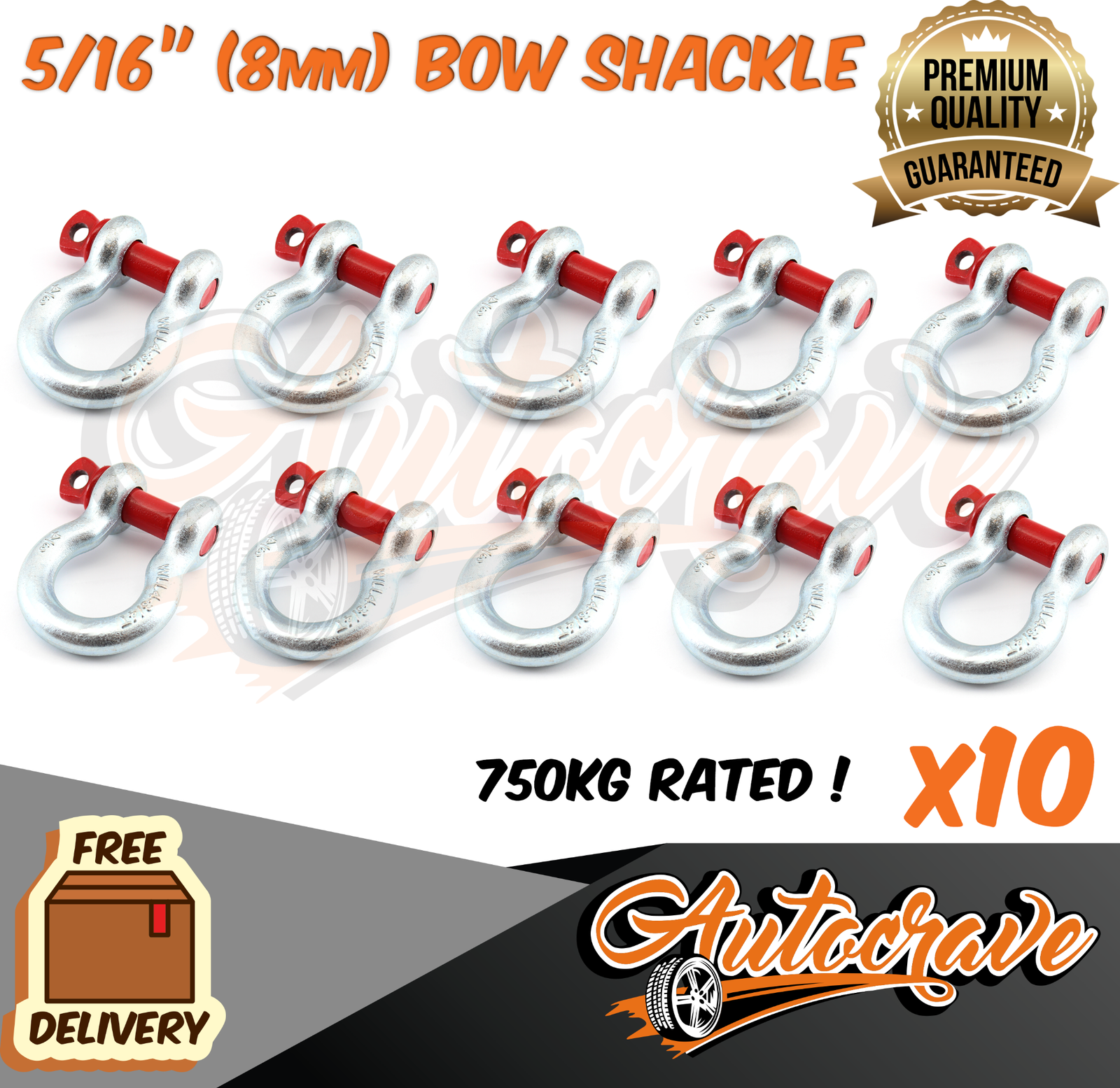 10x Rated Bow Shackle 8mm WLL 750kg S Grade Truck Trailer Car Tow 4WD