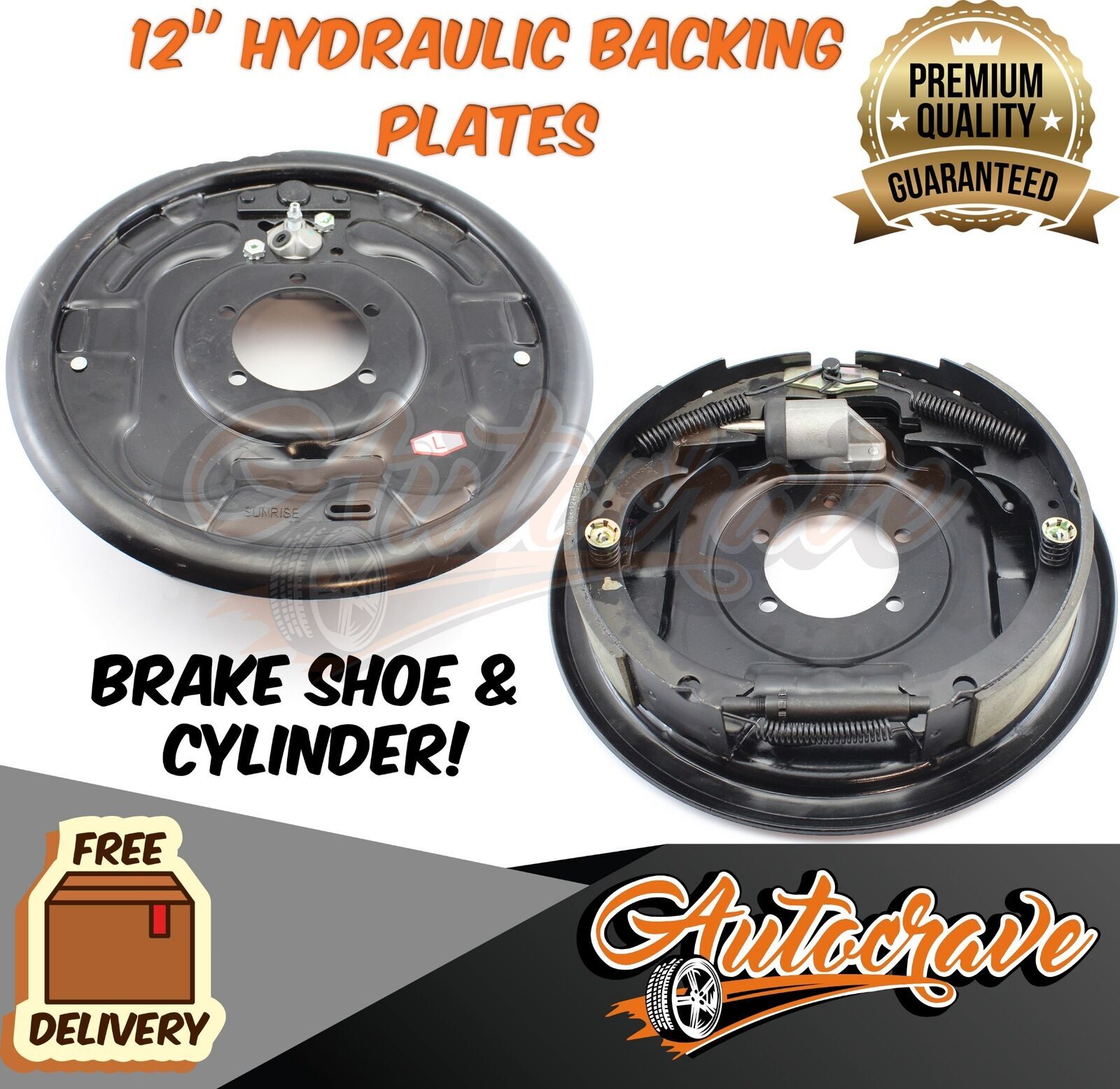 2 x 12" Hydraulic Brake Backing Plate Hub Drum brake shoes Trailer, Caravan PAIR