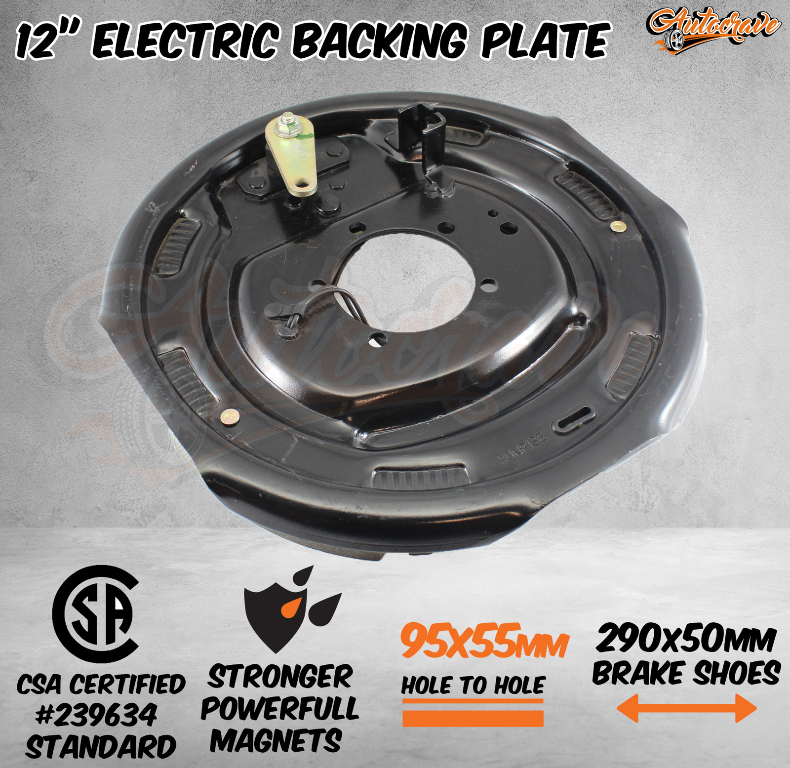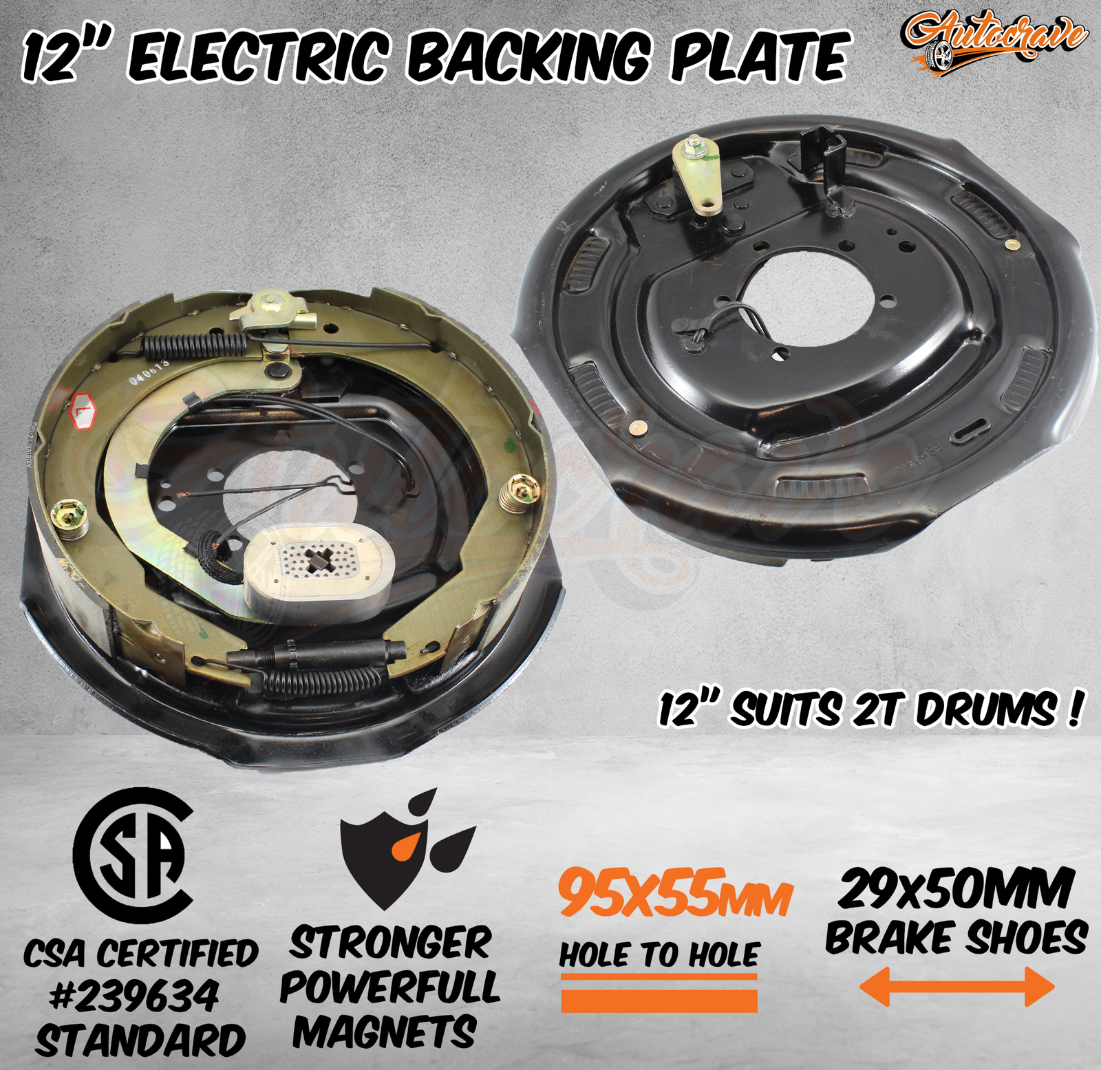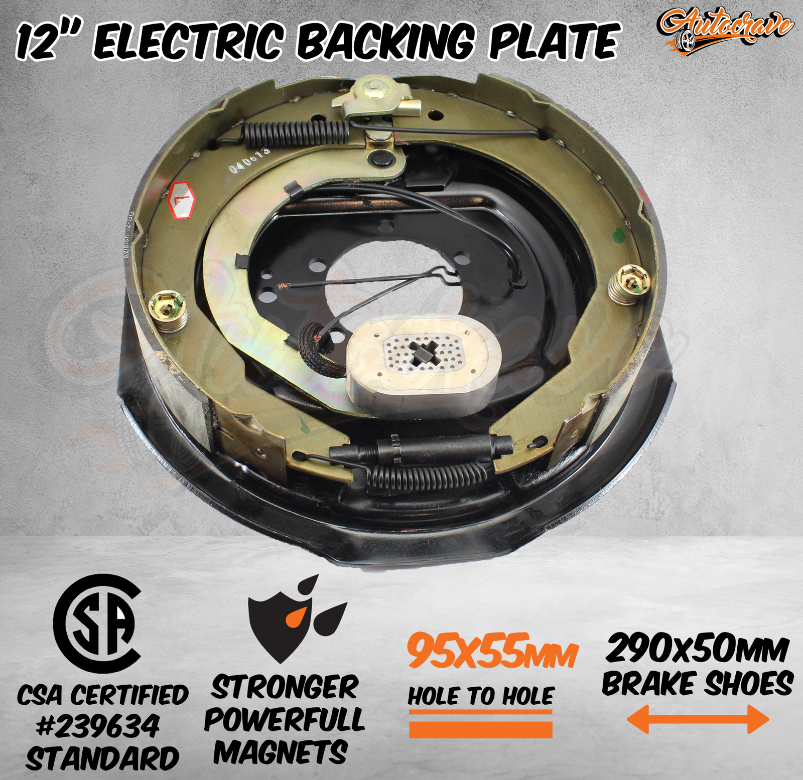 Premium Quality 12" Electrical Backing Plates with Brake Shoes, 12" Magnet and Park Lever!