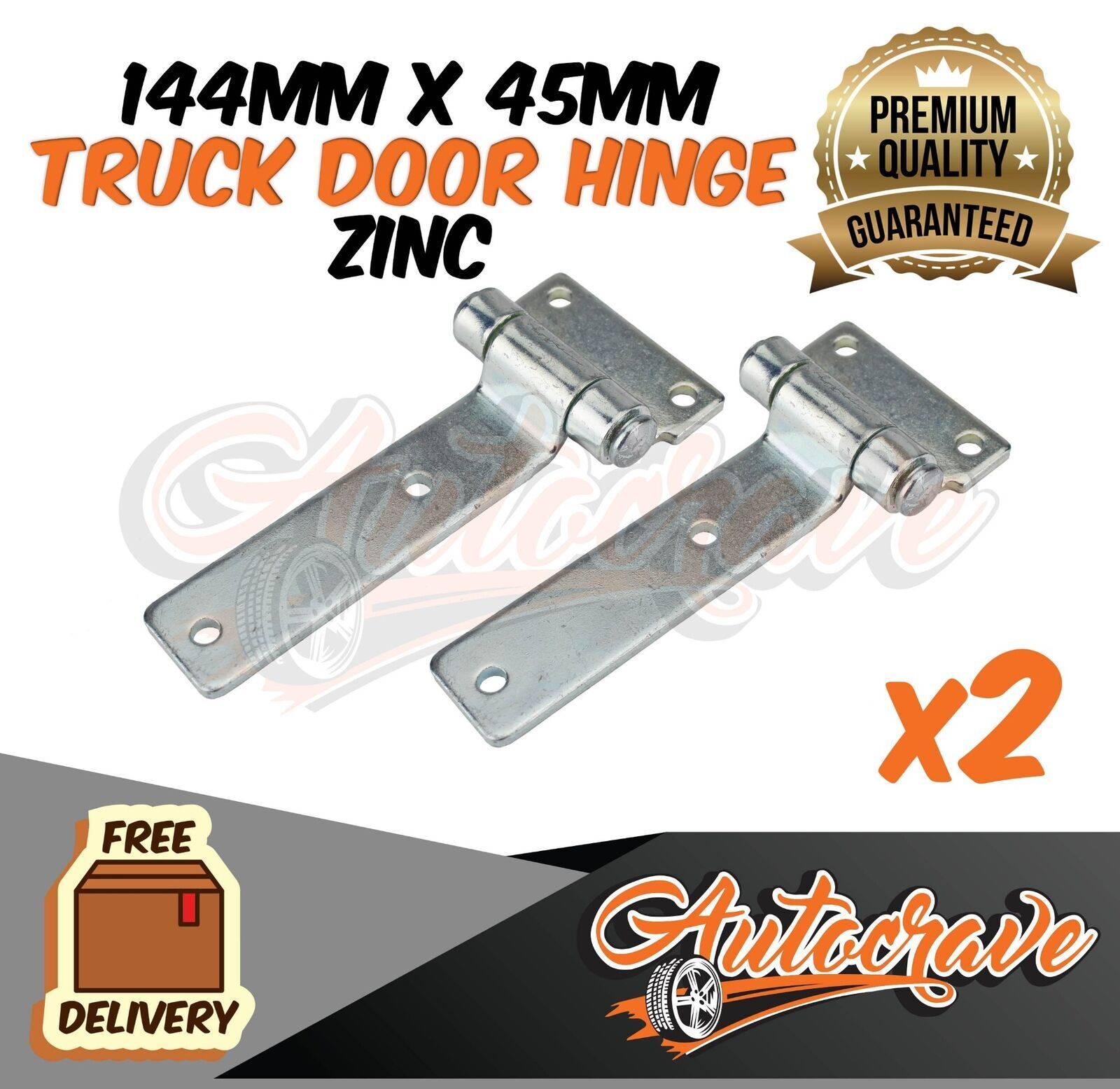 2 x Truck Door Hinge - Zinc Coated -144x45mm Rear Door Hinge PREMIUM QUALITY