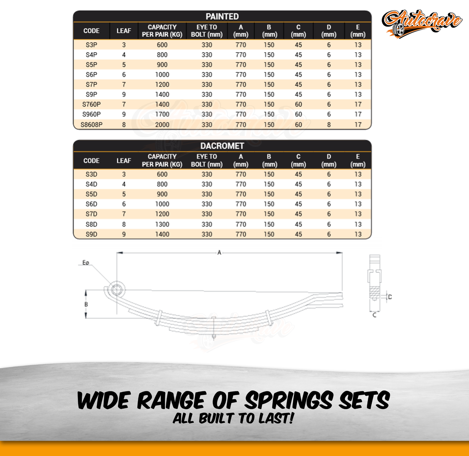 • 2 x 5 Leaf 45 mm Black slipper springs (as per photos)