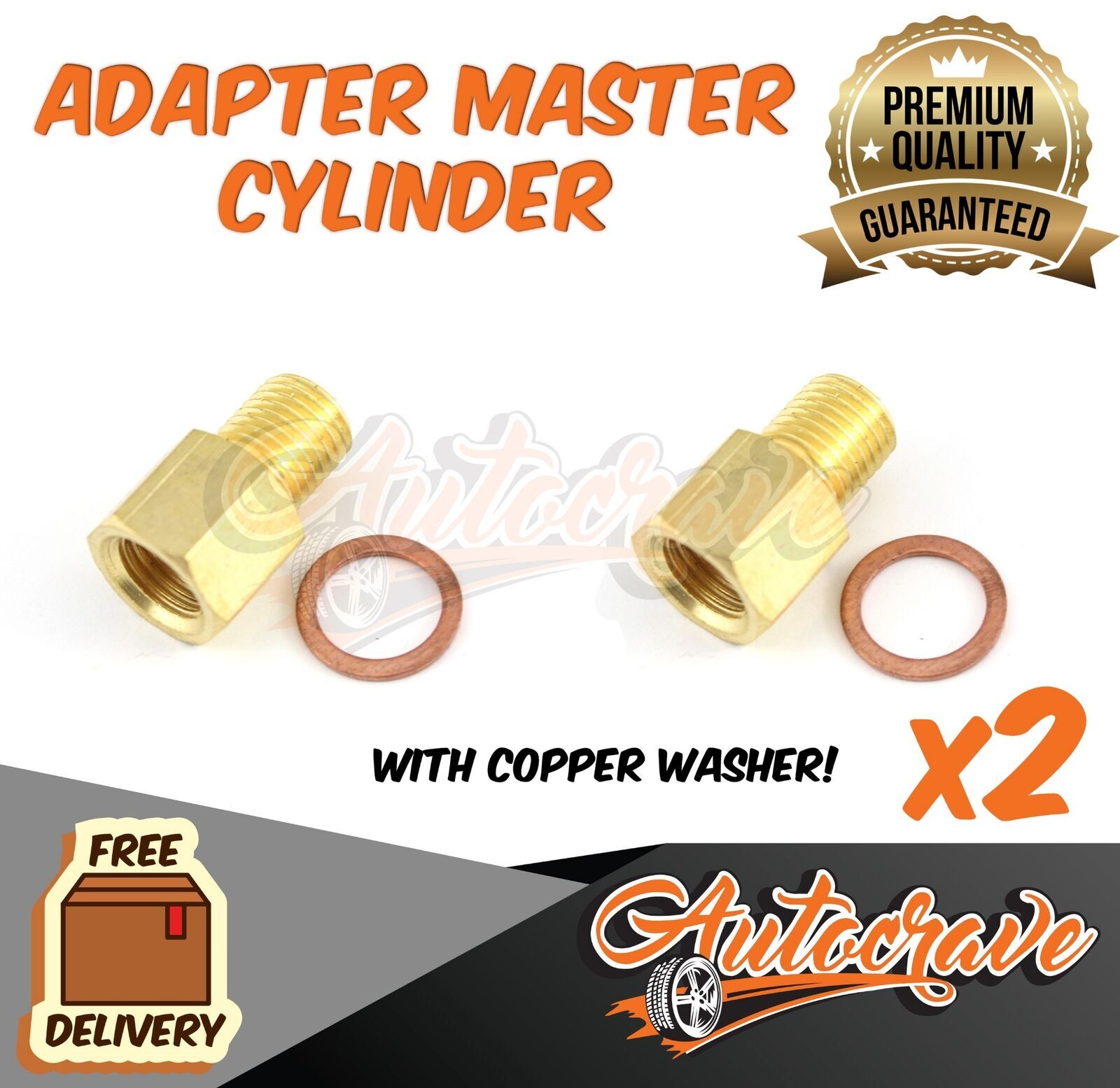 2x Adapter Master Cylinder Jet Ski Boat Caravan Ute Break Fitting, Copper Washer
