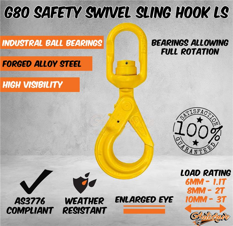 2x G80 Swivel Hook Safety Hook Catch Sling Eye Lifting Chain Connector 6, 8,10mm