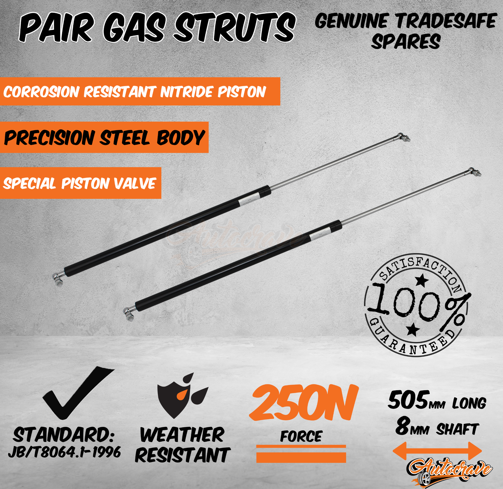 2x Gas Struts 505mm Long x 250N Caravan Camper Trailer Canopy Strut Tool Box 8mm