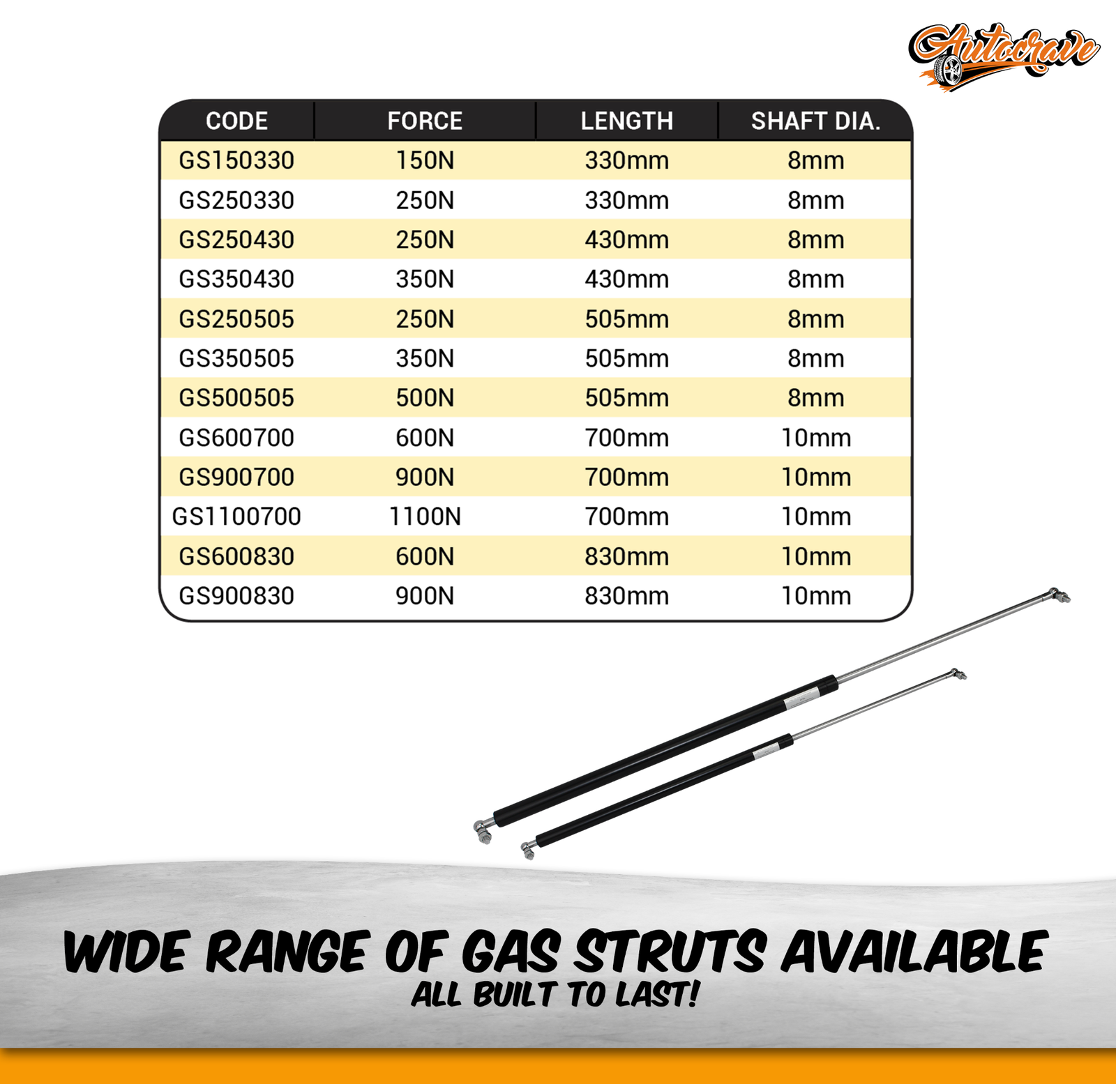 • These Special Gas struts are extremely easy to install! Made to Standards!