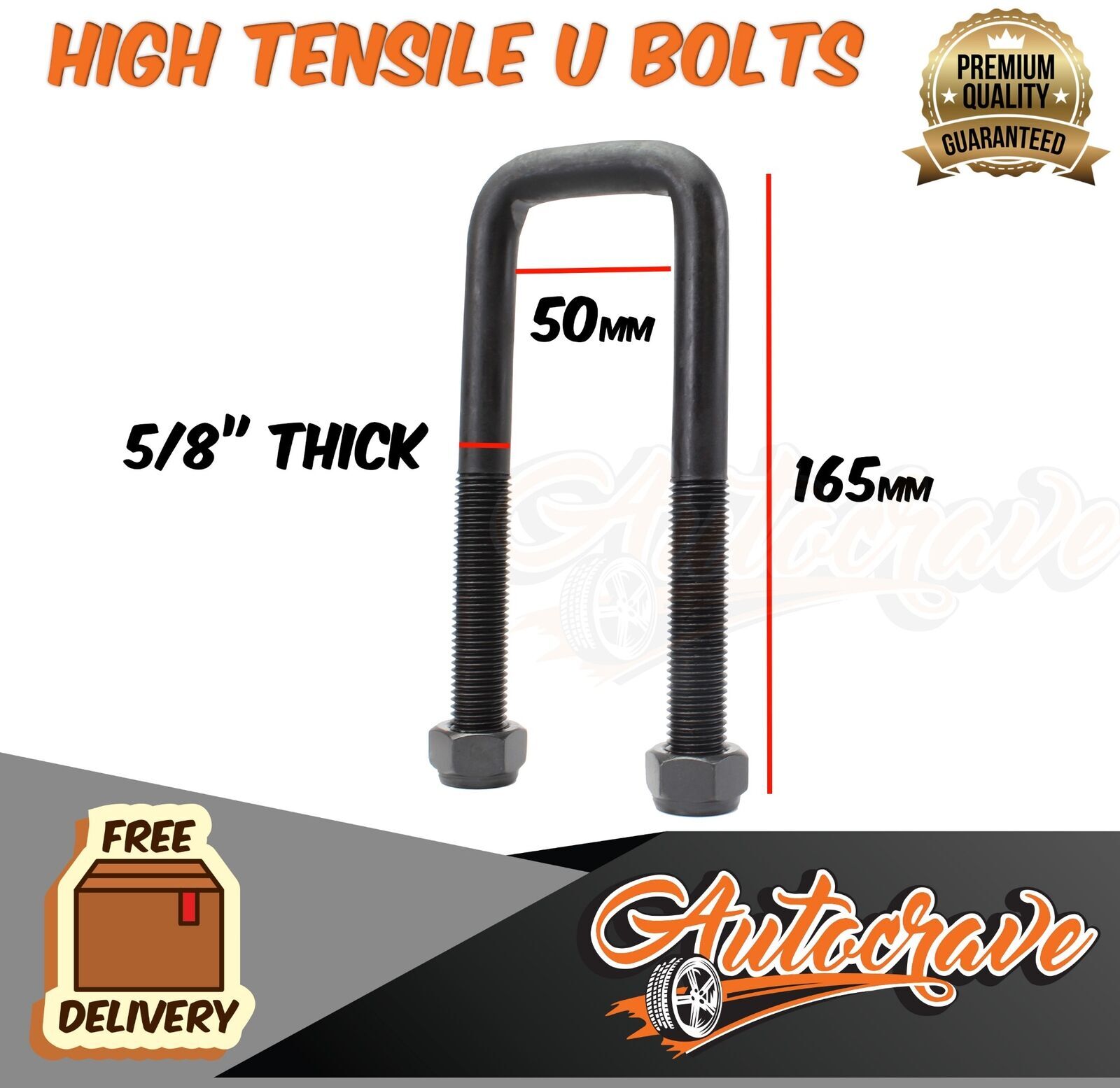 2x HIGH TENSILE 5/8" U BOLT 50mm x 165mm Caravan Trailer Spring Fitting UBOLT