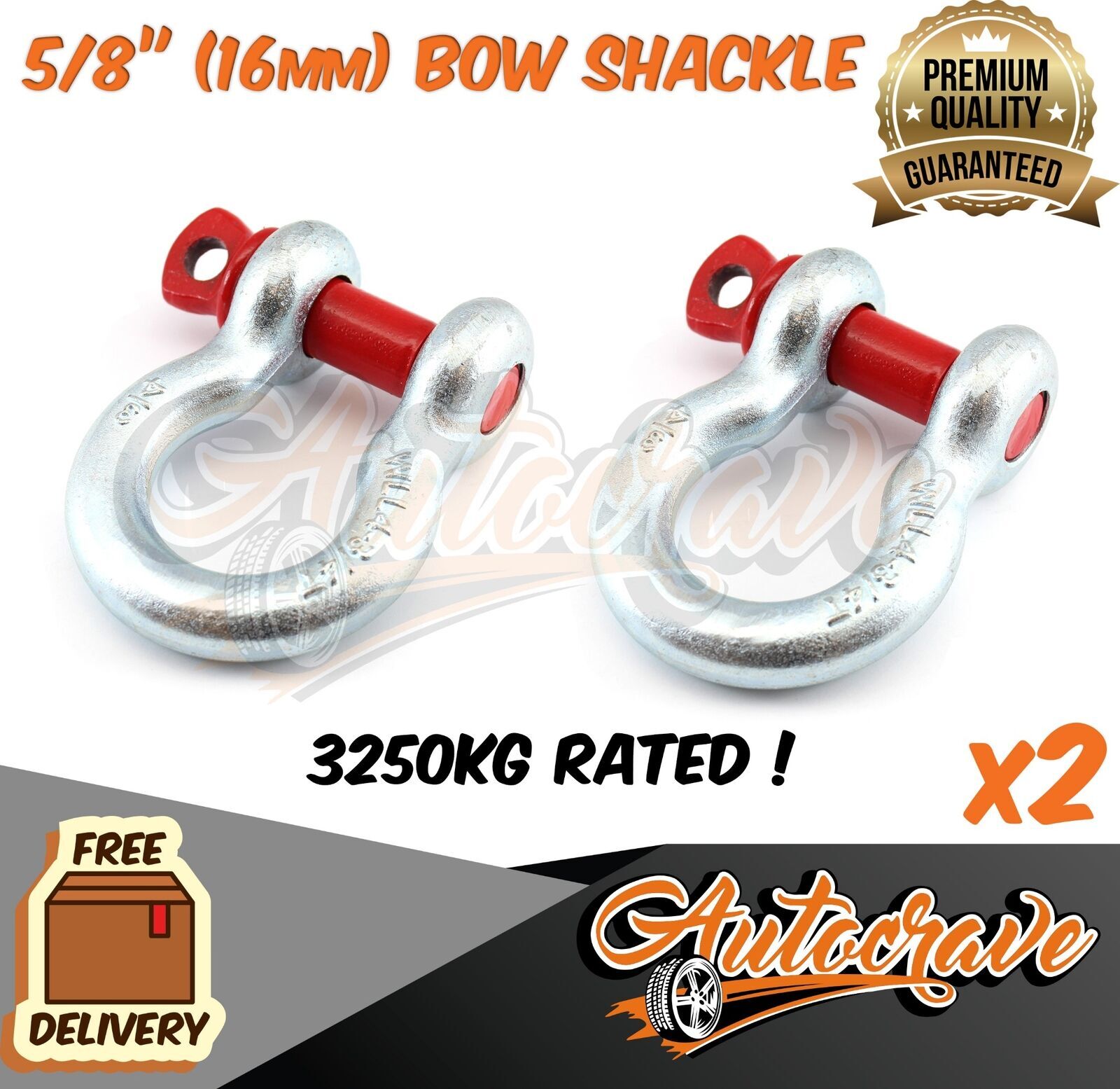 2x RATED BOW SHACKLE 16mm WLL 3250kg S GRADE TRUCK TRAILER CAR TOW 4WD