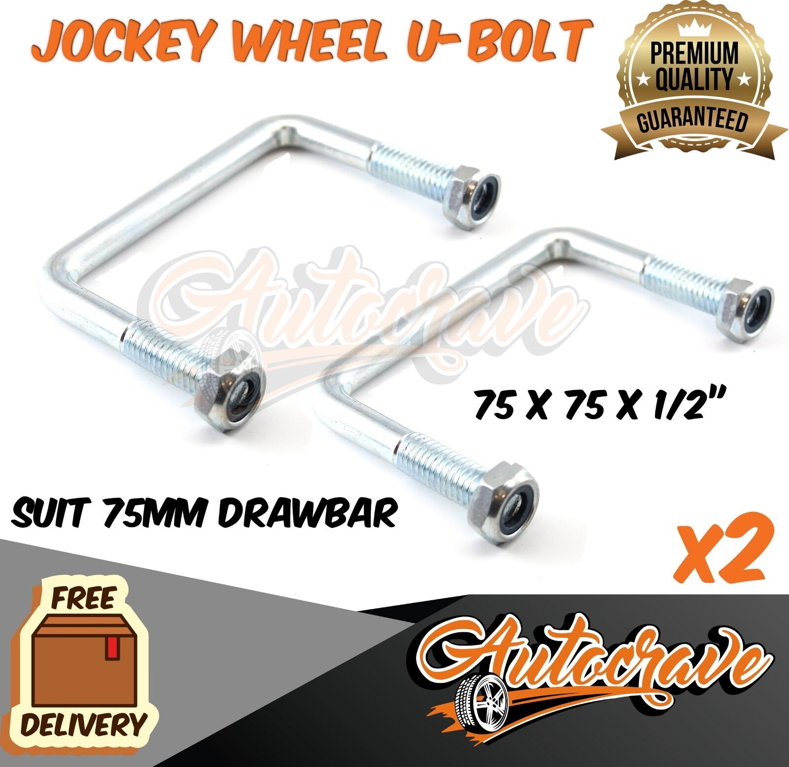 2x TRAILER Jockey Wheel U BOLT Square UBolt 75mm Square 75mm Long Caravan Boat