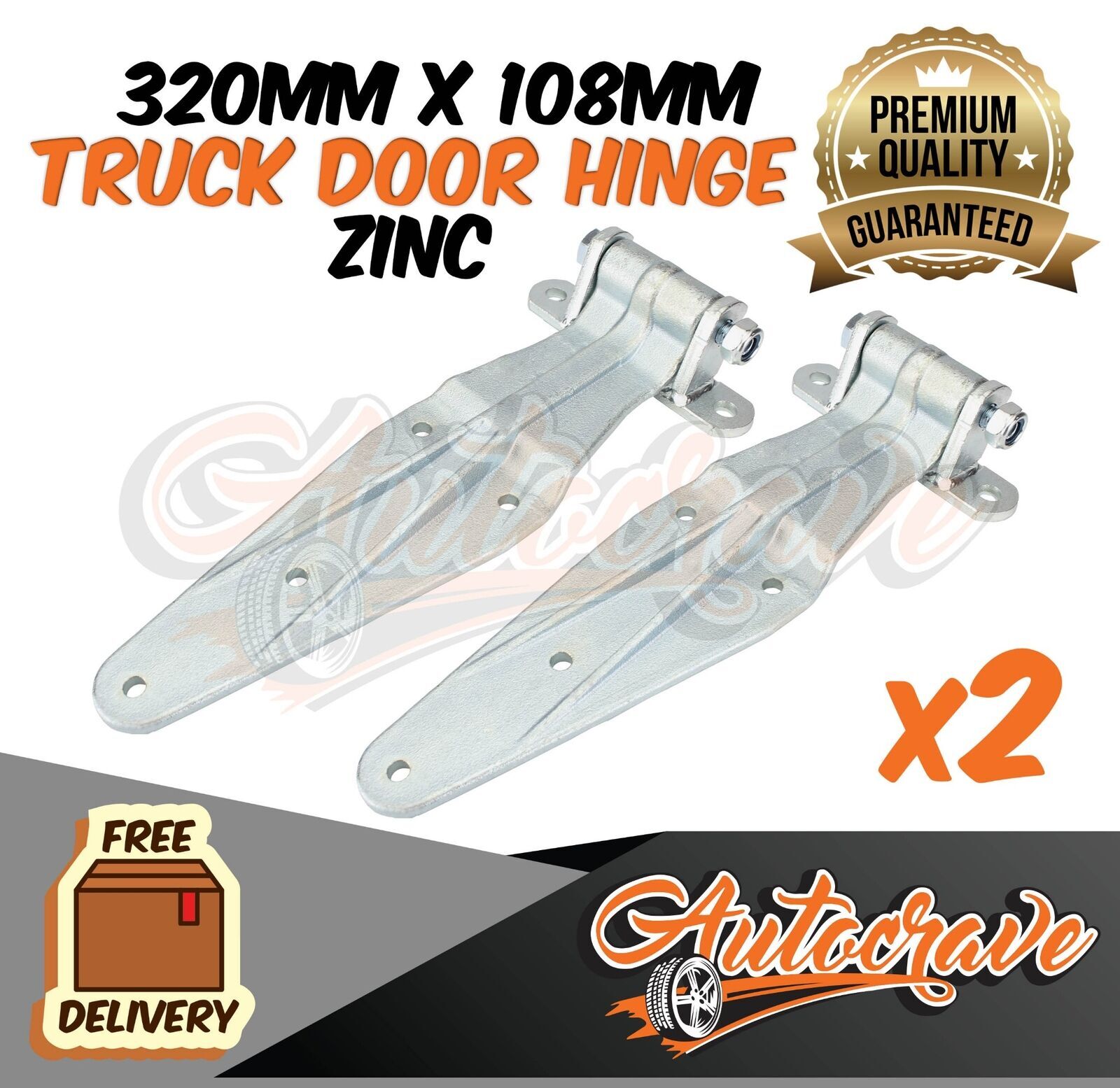 2x Truck Door Hinge - Zinc Coated -320x108mm Rear Hinge Bracket PREMIUM QUALITY