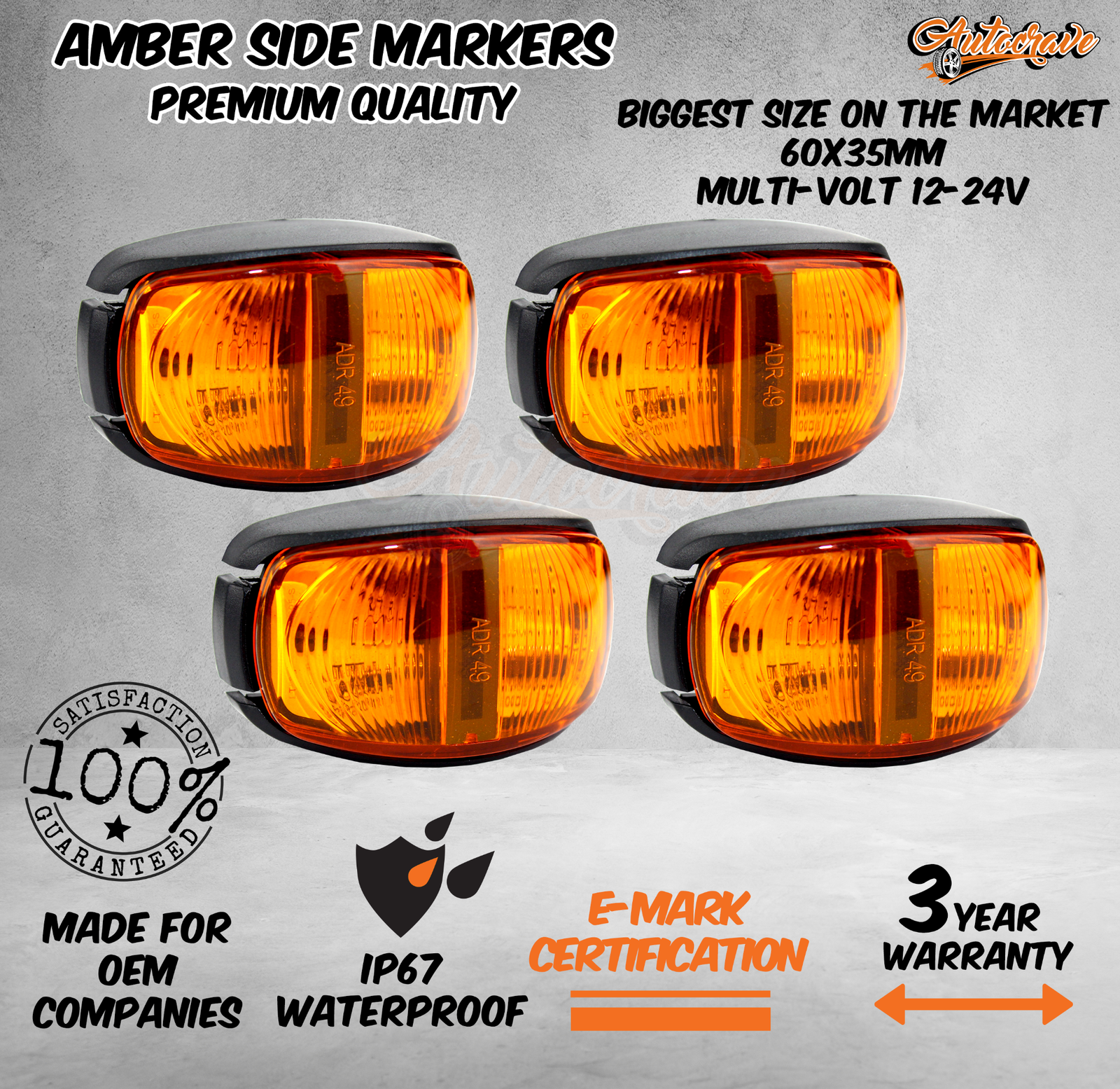 • 4 x AMBER SIDE MARKERS (Back Screw Type with Nuts)
