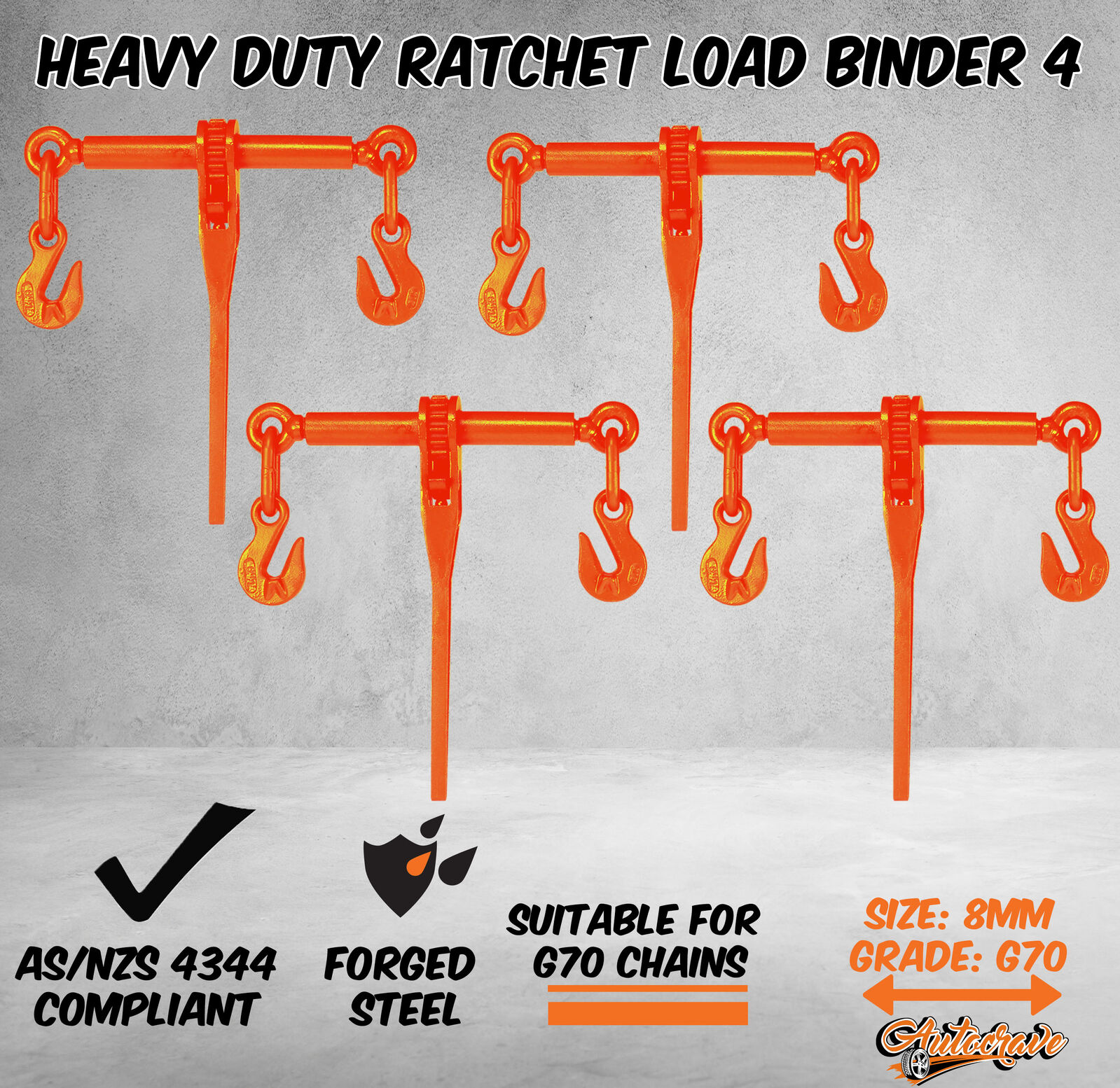 • 4 x Ratchet load binder 8mm