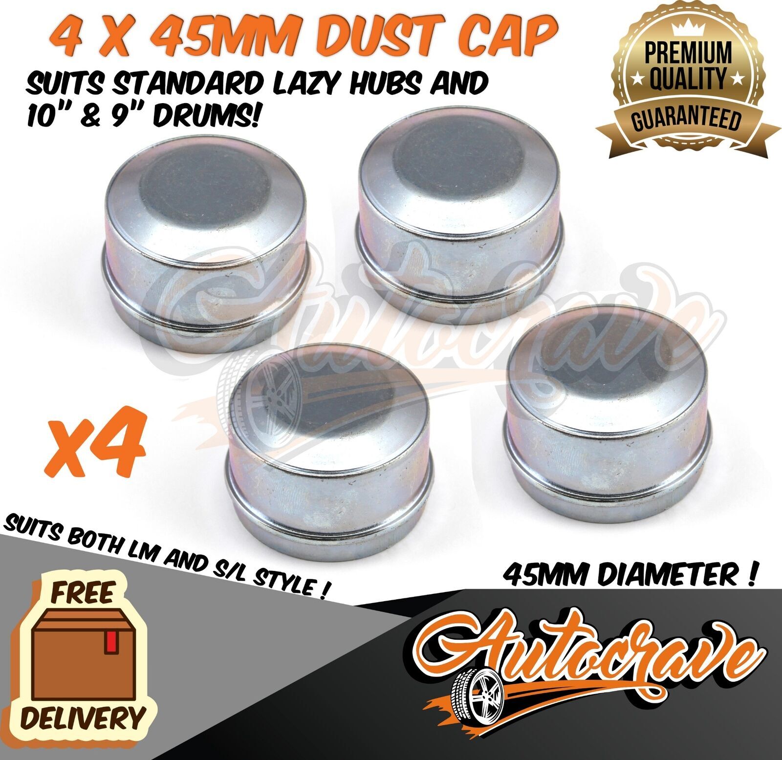 4X Trailer Hub Drum Disc 45MM Cap Caravan axle DUST CAP S/Line LM Boat Bearing