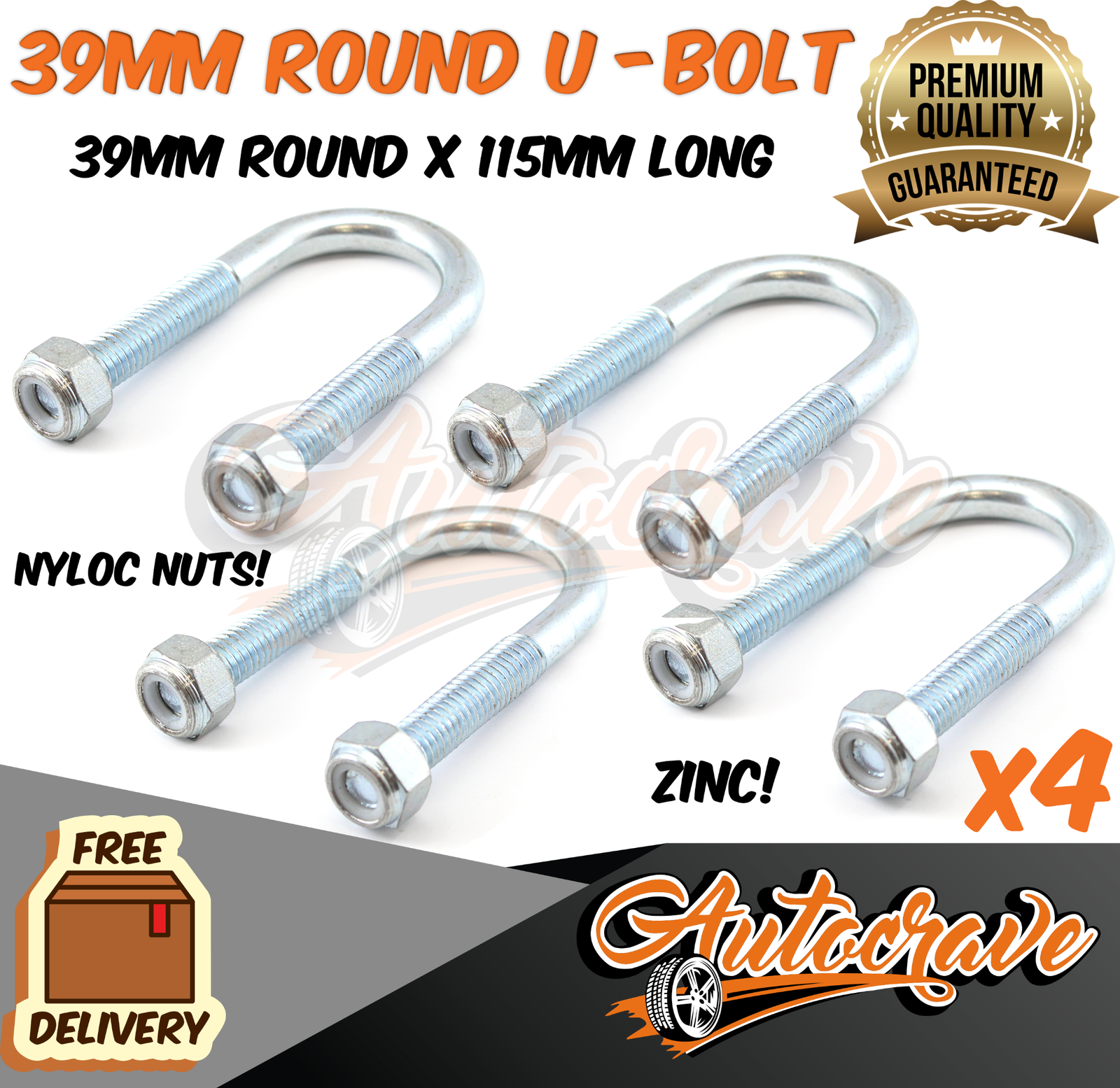 4 x 39mm Round 1/2" U-Bolt Appox. 115mm long ZINC