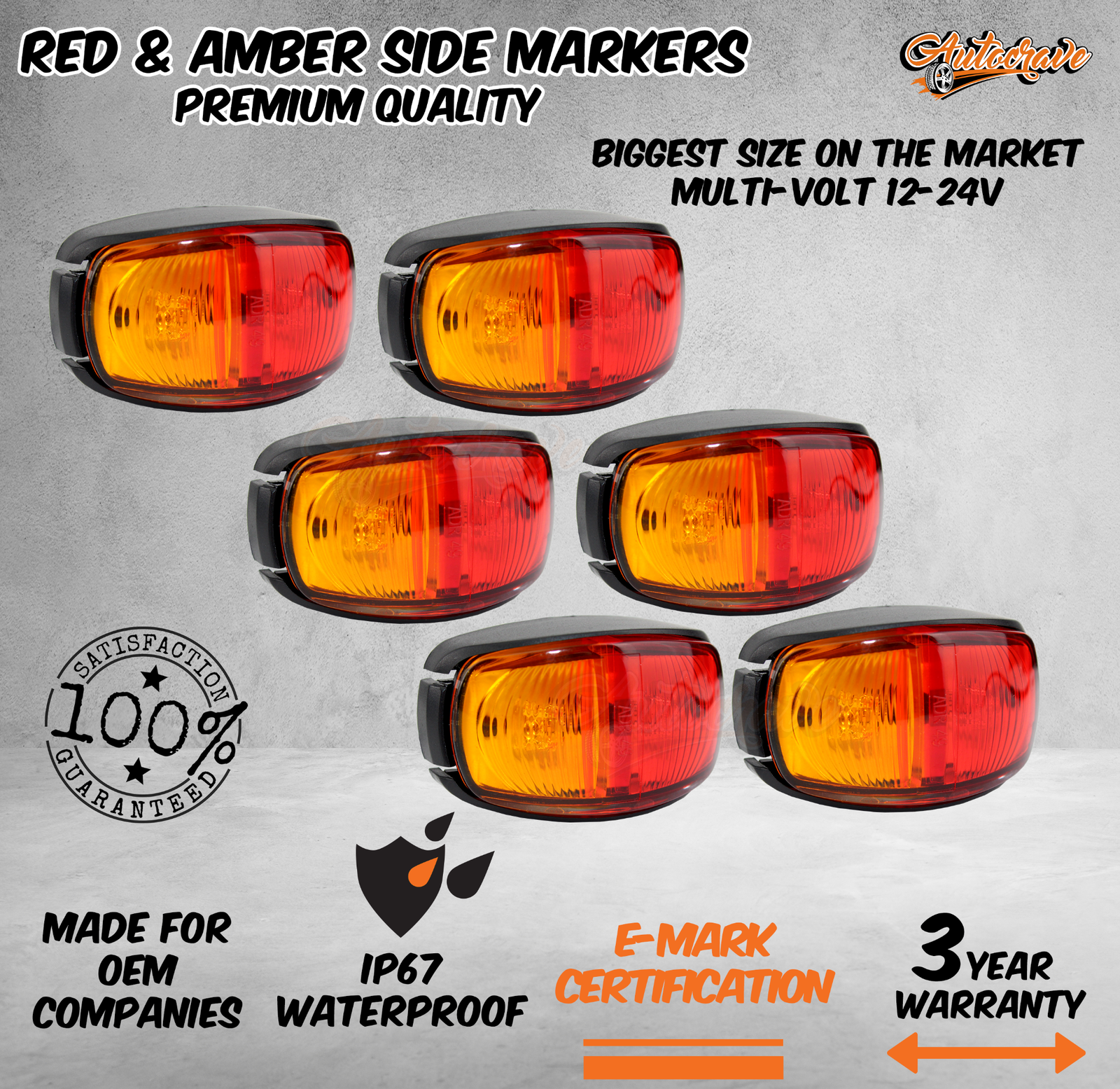 • 6 x RED AMBER SIDE MARKERS (Back Screw Type with Nuts)