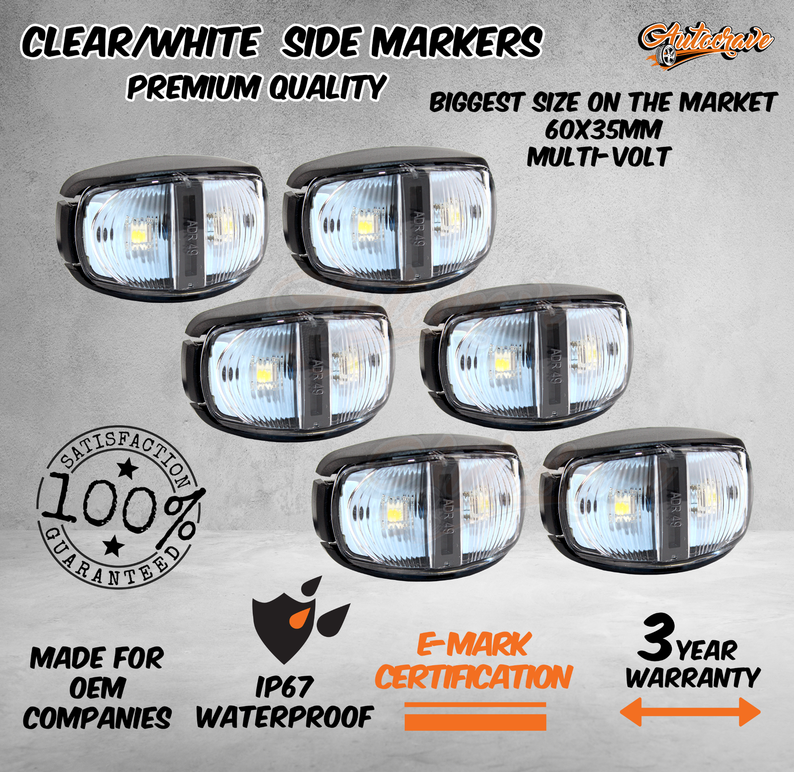 6x LED CLEARANCE LIGHT SIDE MARKER LAMP CLEAR WHITE TRAILER TRUCK CARAVAN M/VOLT