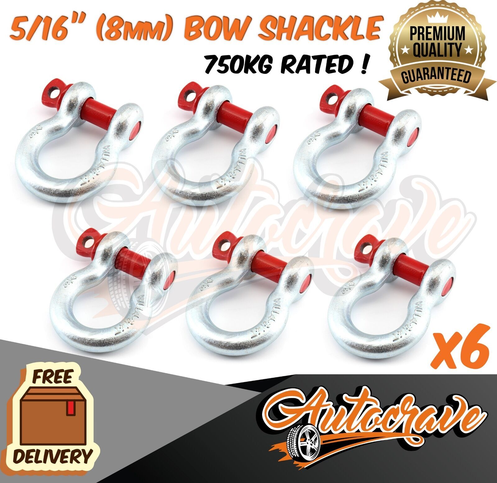 6x RATED BOW SHACKLE 8mm WLL 750kg S GRADE TRUCK TRAILER CAR TOW 4WD