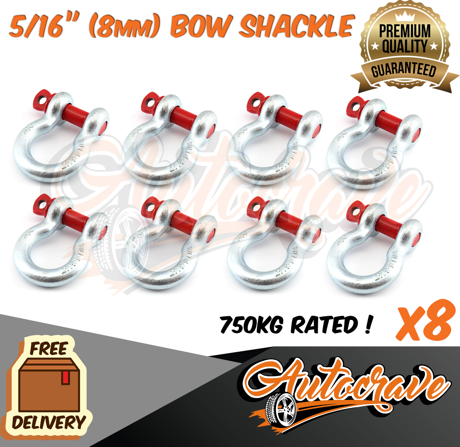 8x Rated Bow Shackle 8mm WLL 750kg S Grade Truck Trailer Car Tow 4WD