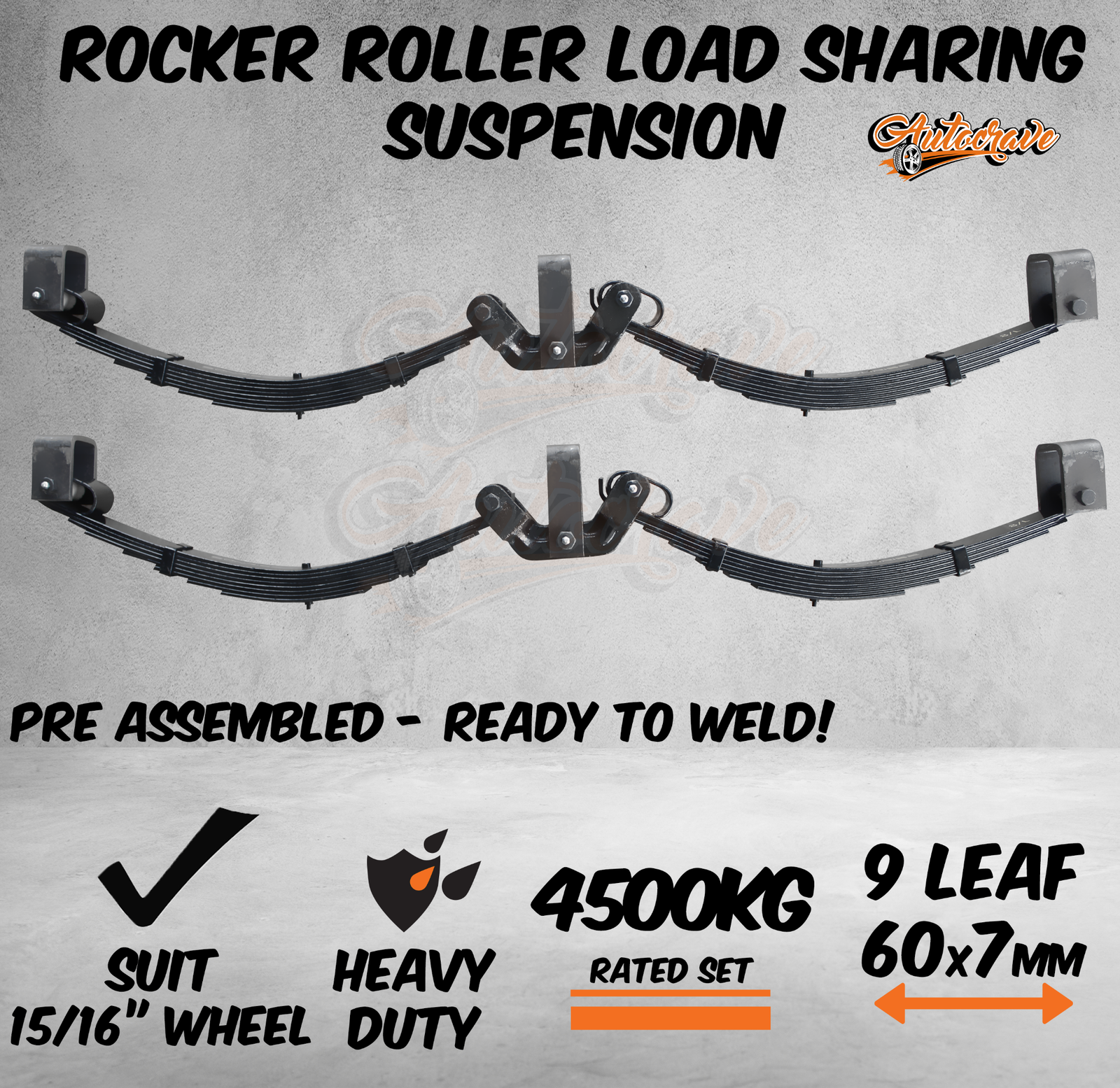 9 Leaf 4500KG Rocker Roller Tandem Trailer Spring Caravan Horse Float 15/16" 7mm