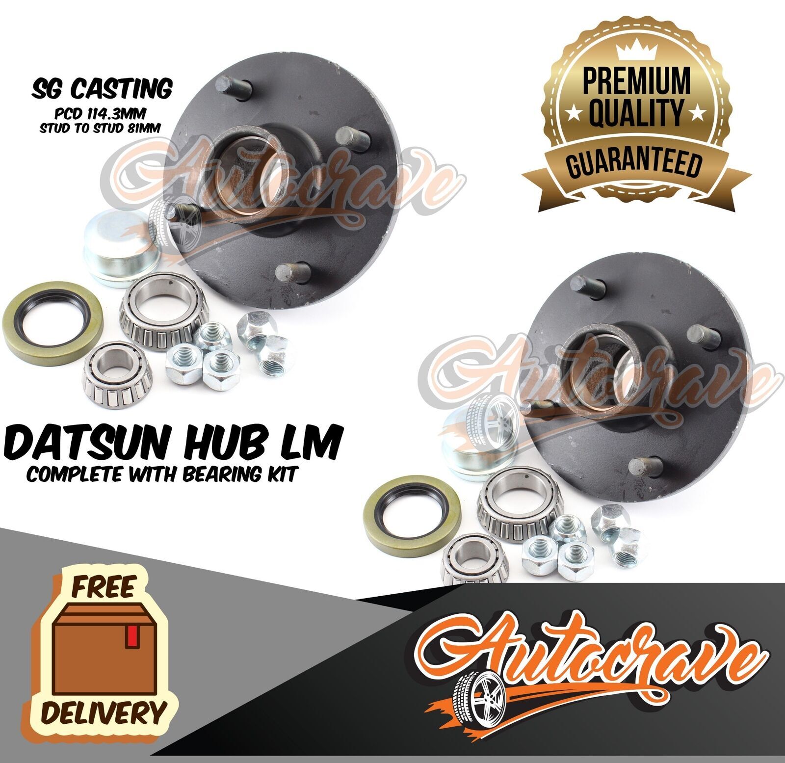 Datsun Hub 4 Stud Pattern Trailer Hub, Complete with LM Bearing Kit