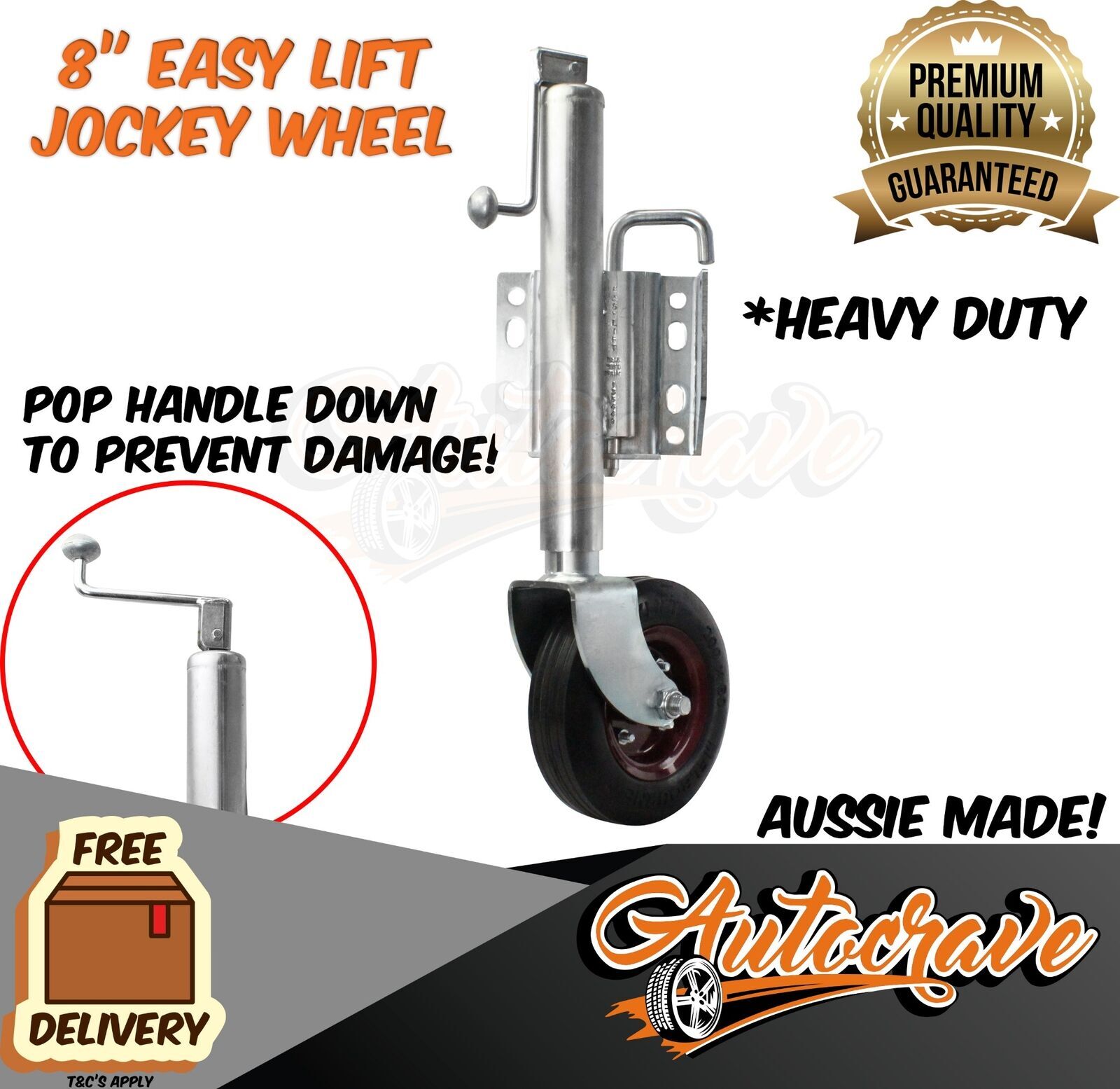 1 x 8" Australian Made Easy lift Jockey wheel With swing up bracket and Pin AND FLIP HANDLE