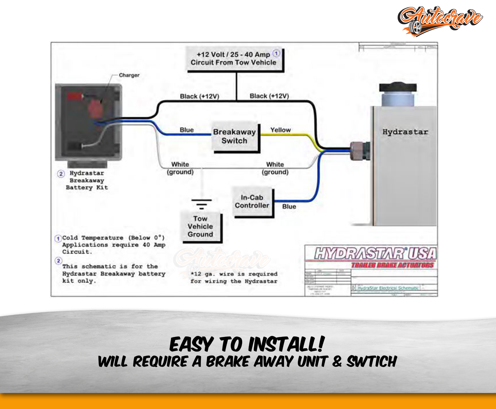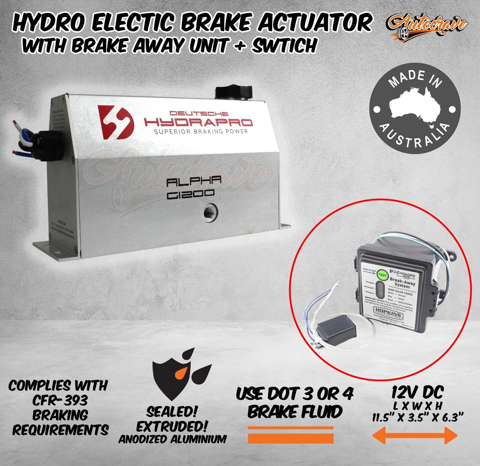 HYDRAPRO Trailer Brake Actuator With Hopkins Break Away Unit and Switch