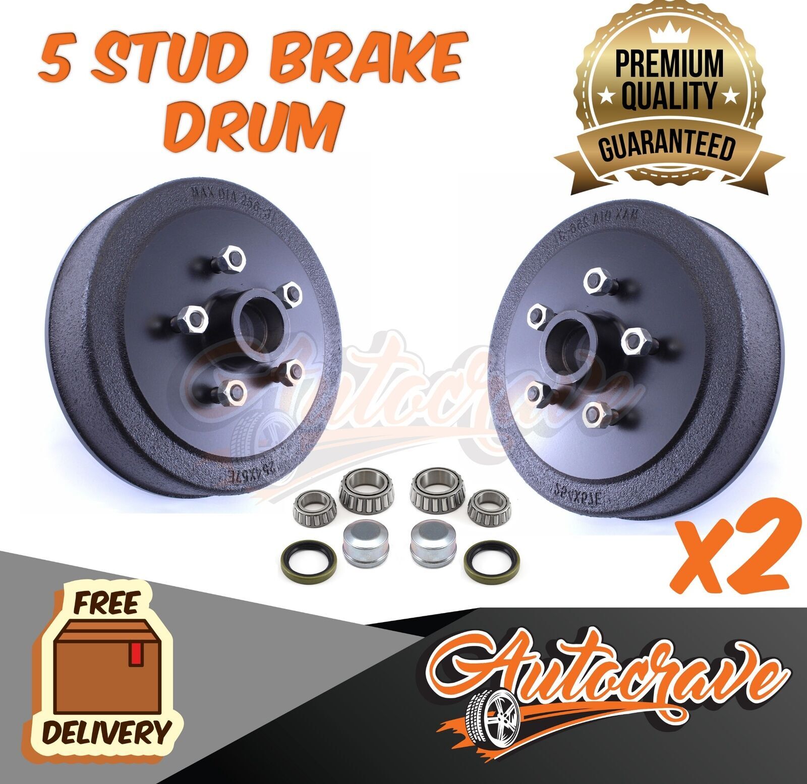 Hydraulic & Electrical Trailer Brake Drum 10" Holden HT 5 Stud LM/Holden Bearing