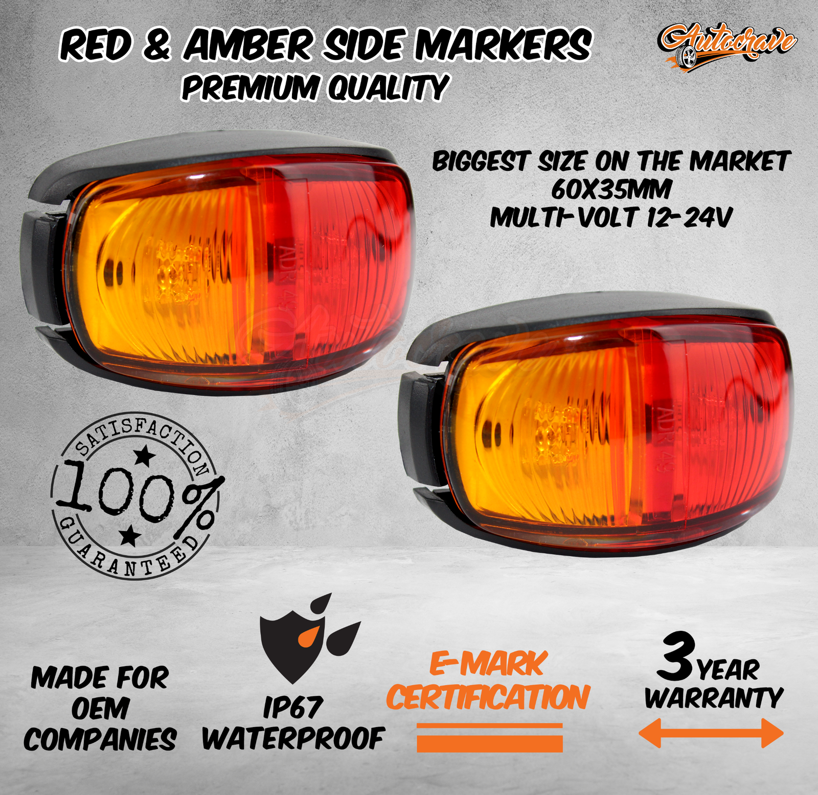 • 2 x RED/AMBER SIDE MARKERS