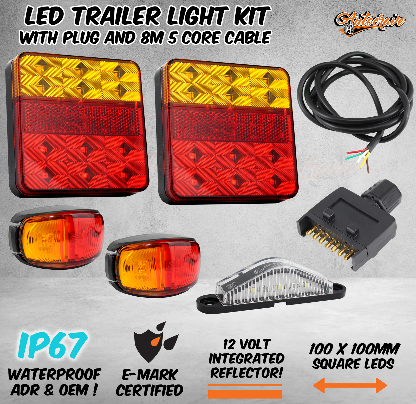 LED TRAILER LIGHT KIT SQUARE LIGHT NUMBER PLATE LIGHT FLAT PLUG SIDE MARKERS 12V