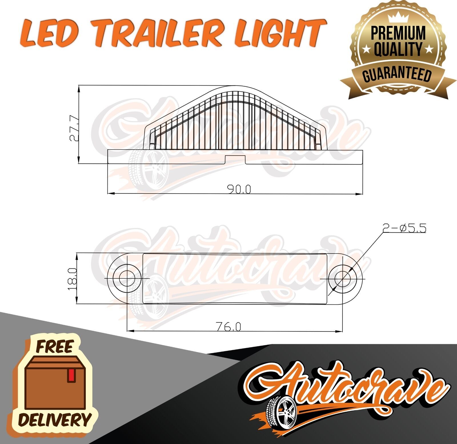 LED Number Plate Light to suit various trailers with dimensions of 90 x 18mm. Suitable for replacement or new vehicles.