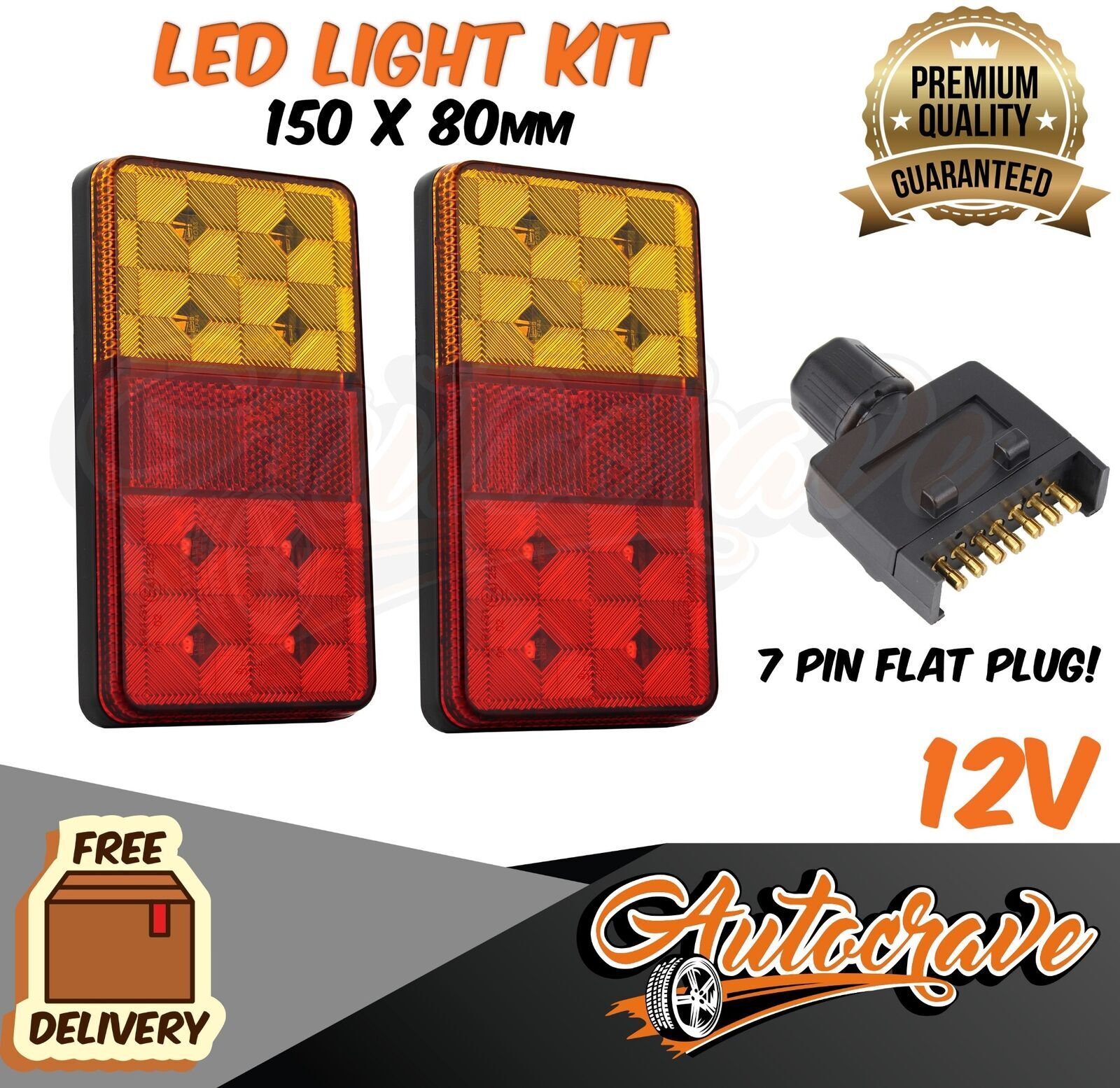 LED Trailer Tail Light Kit 7 Pin Flat Plug 5 Core Caravan Boat Adapter Marine x2