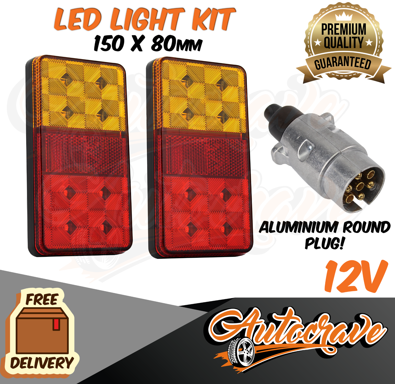 LED TRAILER TAIL LIGHT KIT 7 PIN ROUND PLUG 5 CORE CARAVAN BOAT ADAPTER MARINE