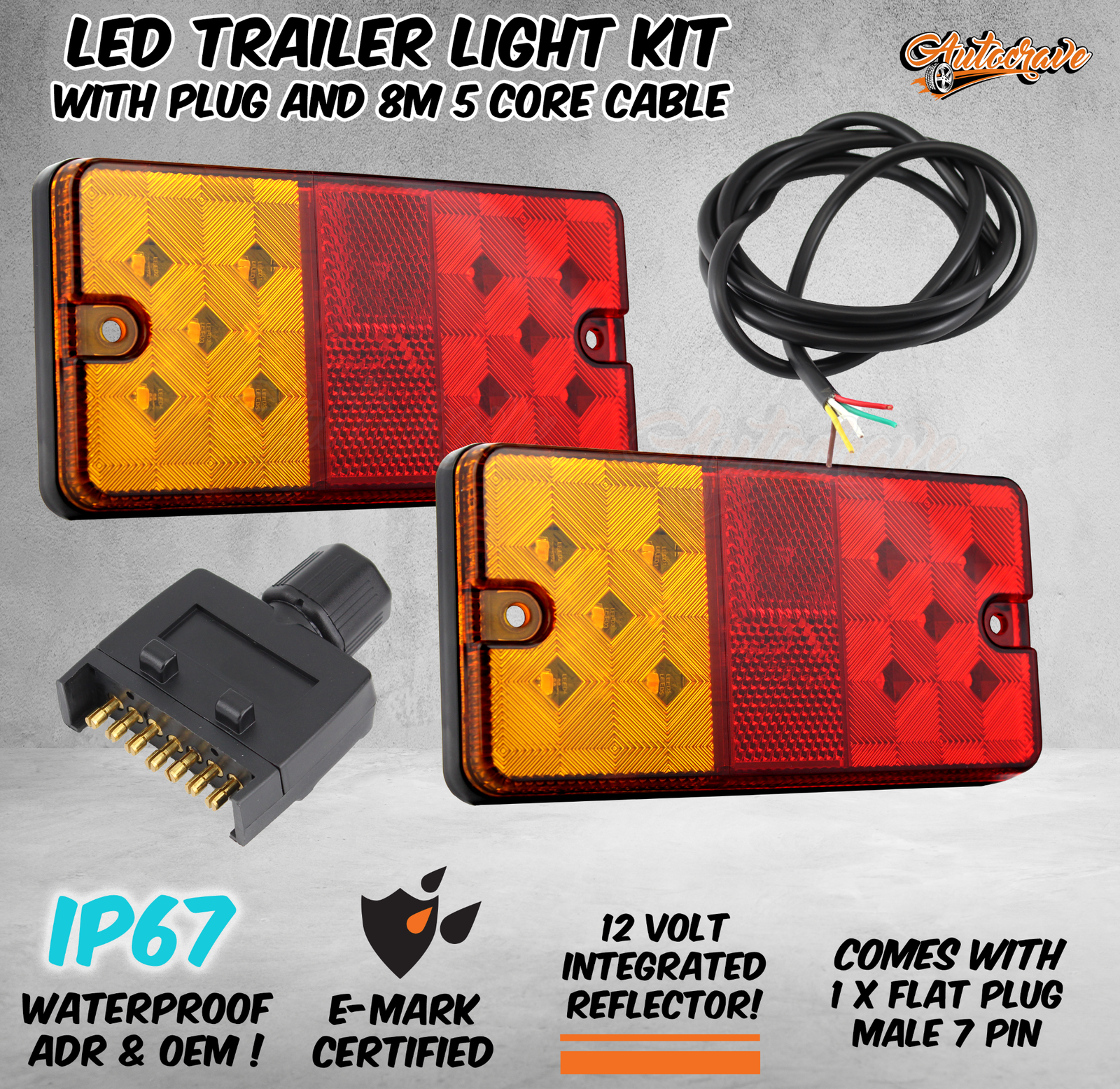 LED Trailer Tail Light Kit Pair Plug 8m 5 Core Wire Caravan Boat Ute Front Screw