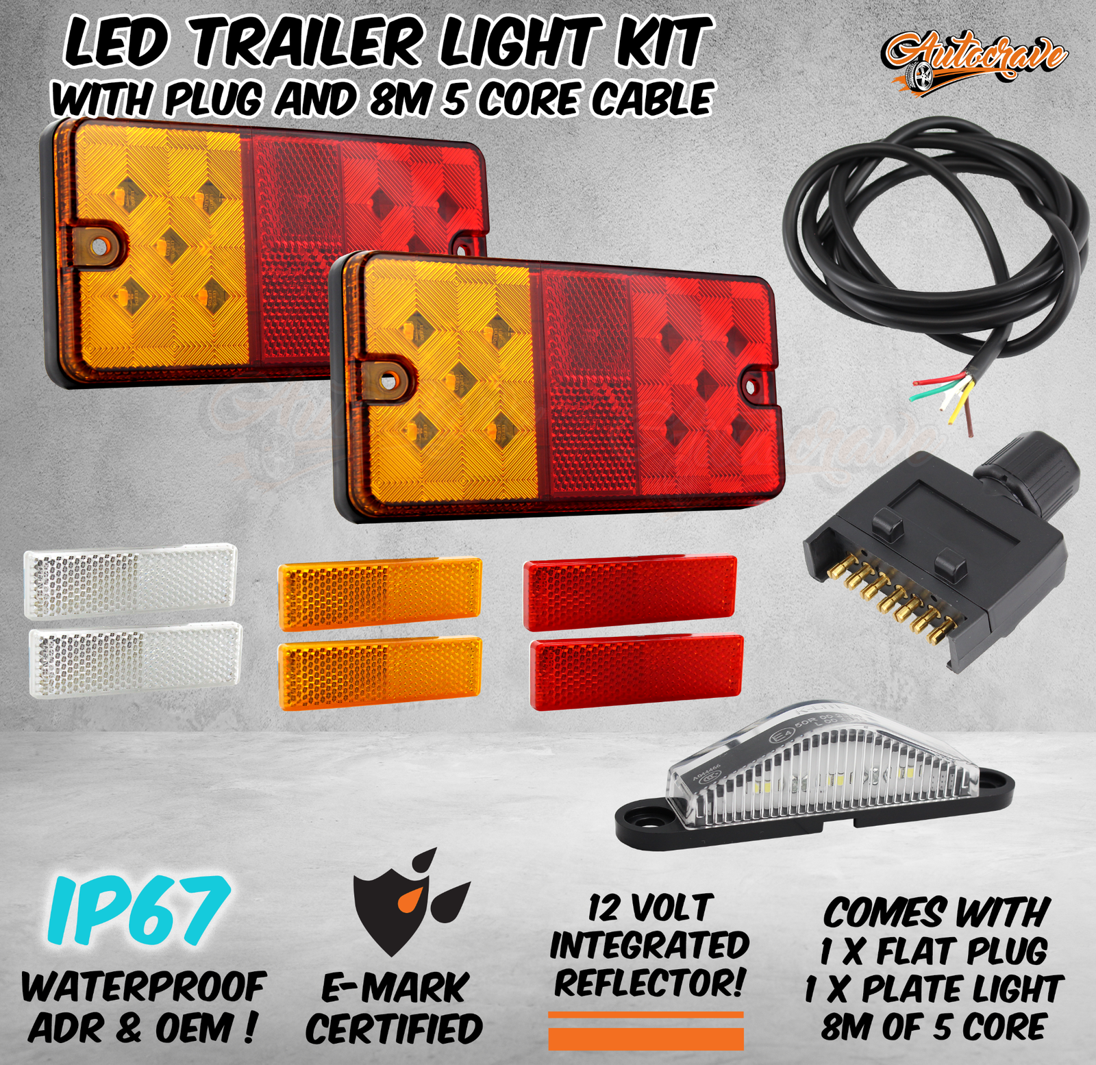 LED TRAILER TAIL LIGHT KIT PAIR PLUG 8m 5 CORE WIRE CARAVAN BOAT UTE Side Marker