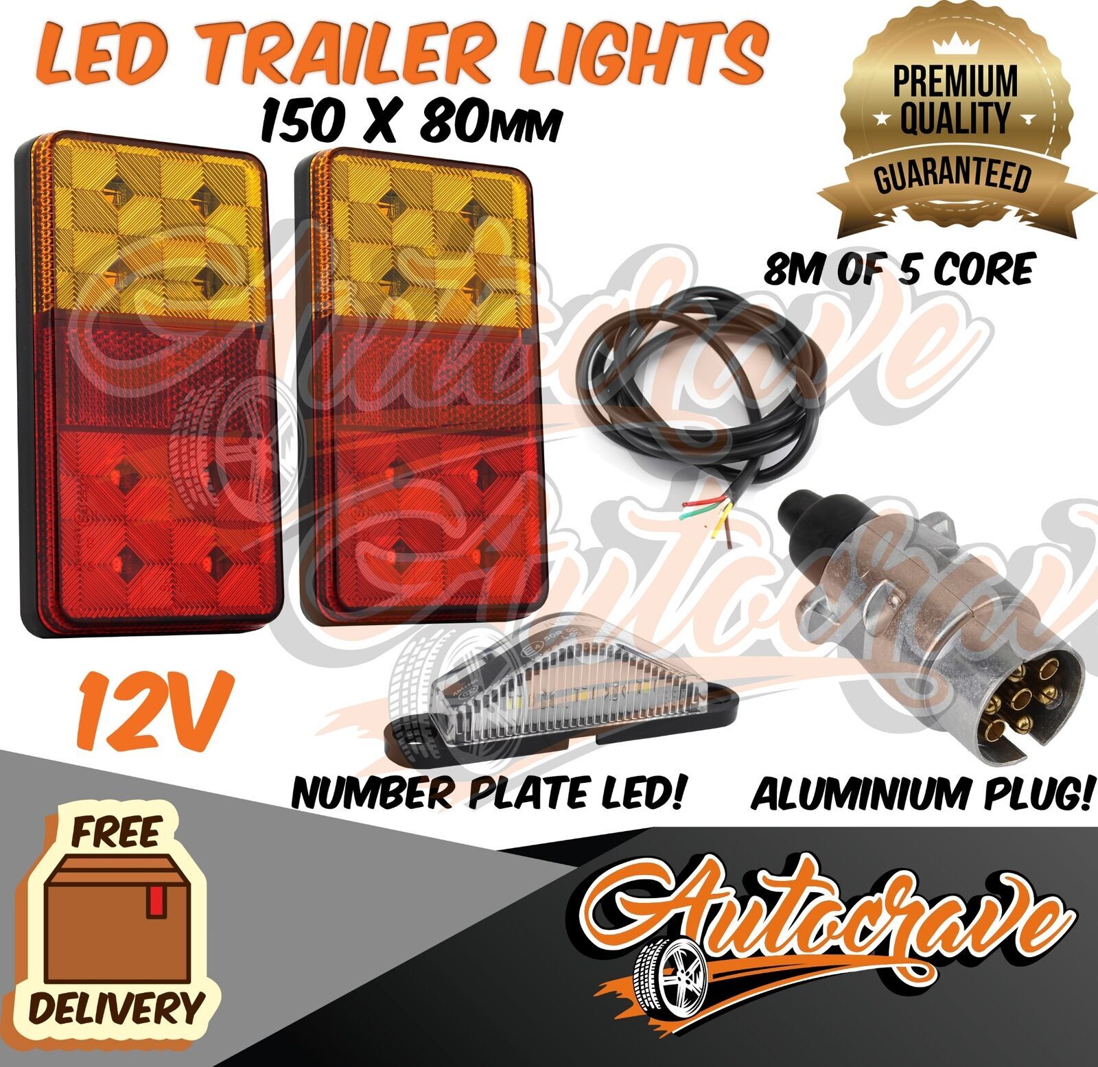 LED TRAILER TAIL LIGHTS NUMBER PLATE ALUMIN PLUG 5 CORE WIRE CARAVAN BOAT 150x80