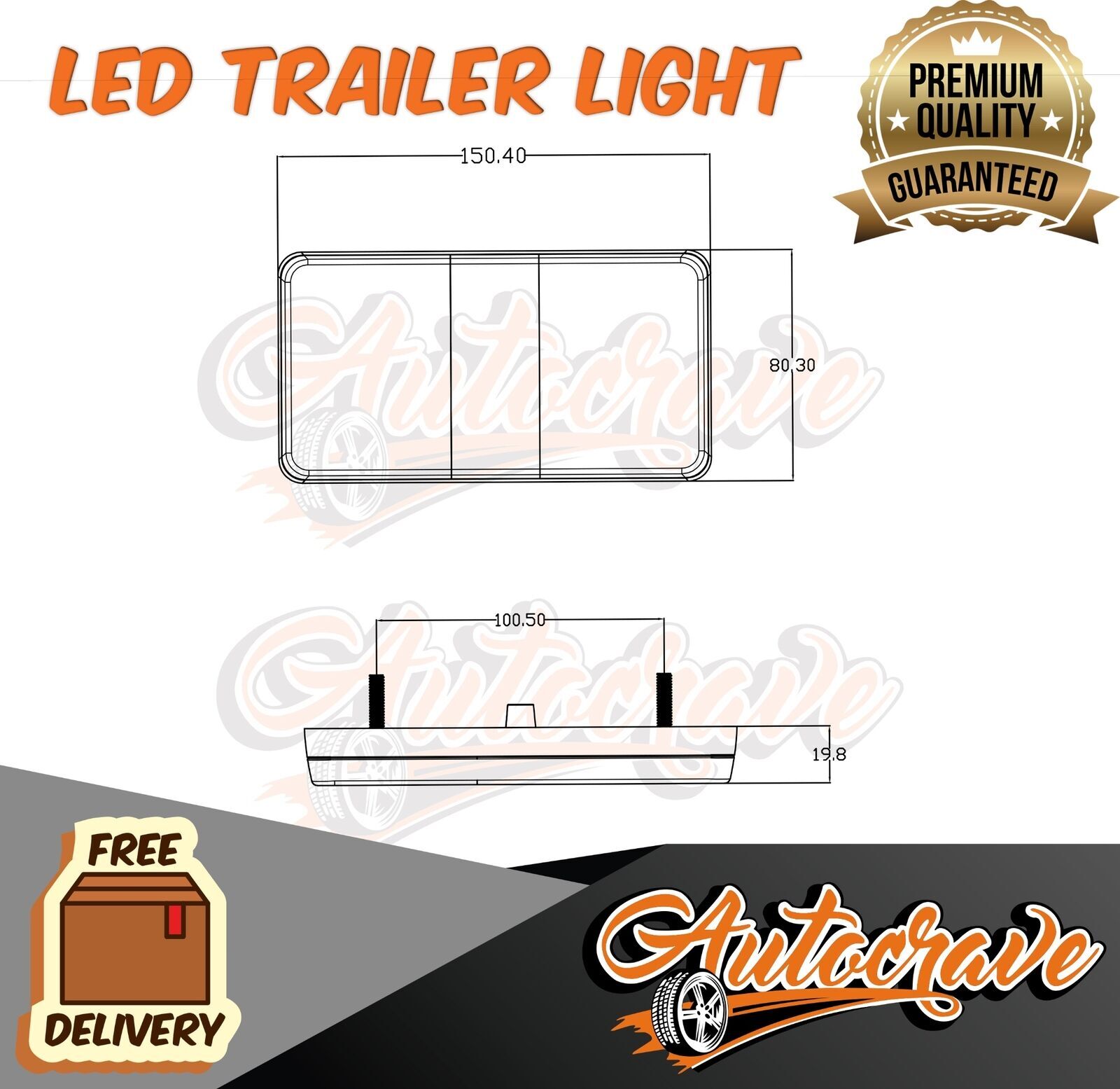 LED Combination Tail Light to suit various trailers with dimensions of 150 x 80mm. Suitable for replacement or new vehicles.
