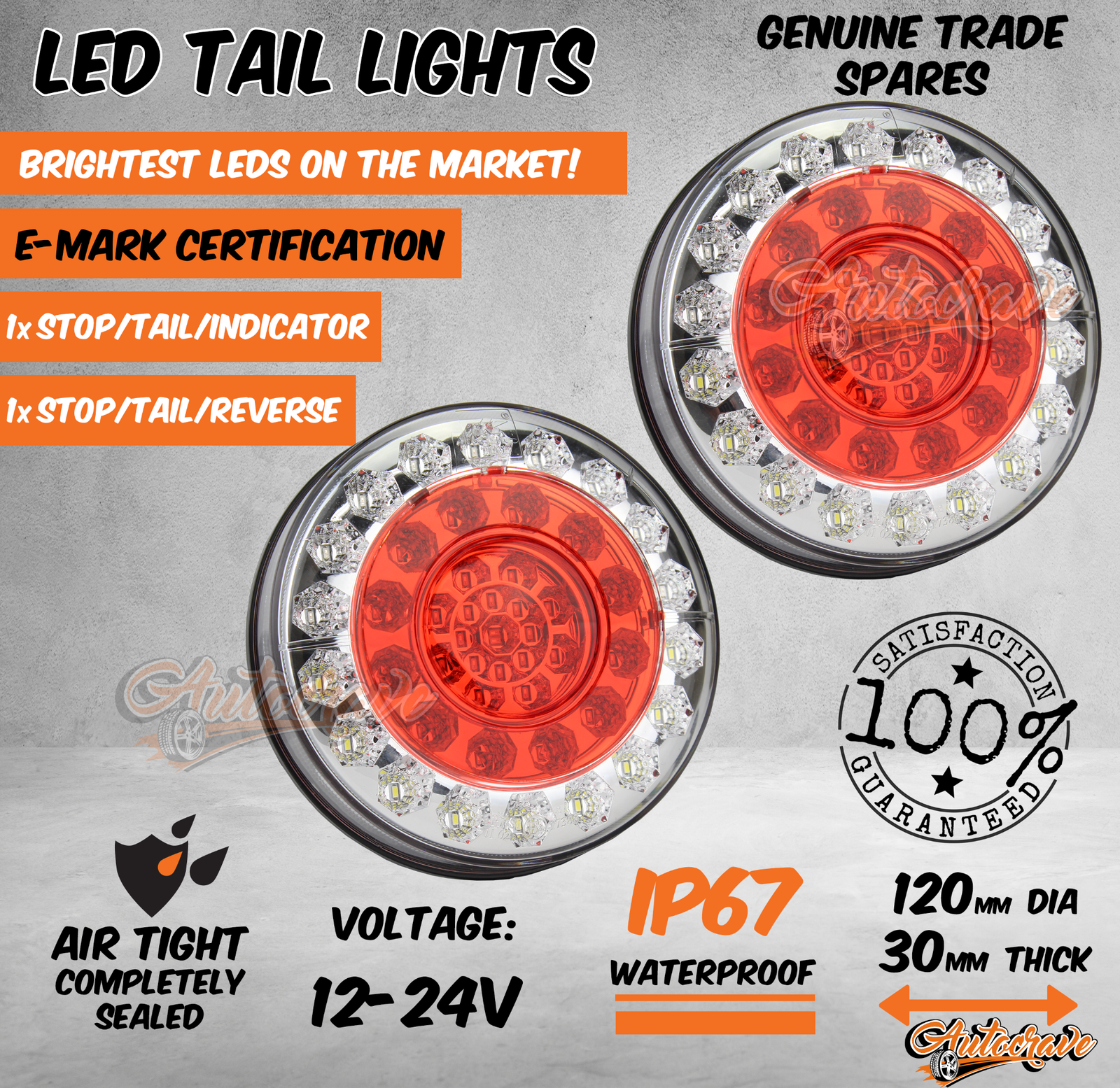 2x Jumbo Truck LED Tail Lights 12-24V 60 LED Indicator Lamp For Caravan Trailer