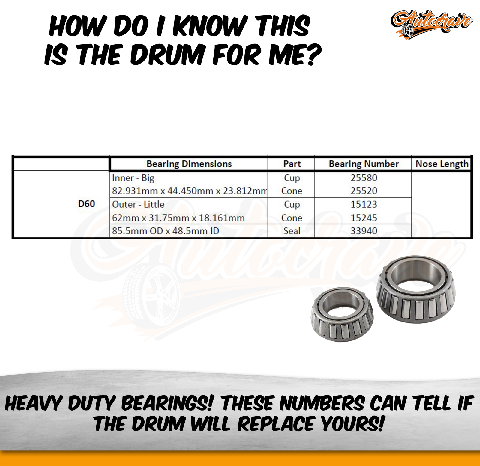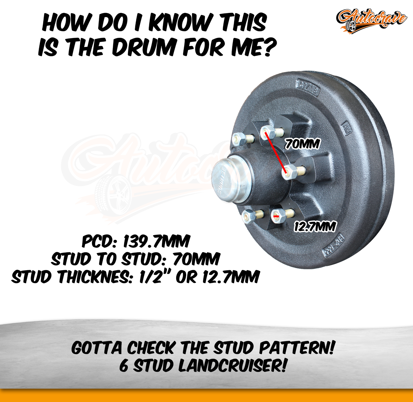 2 x 12" 6 Stud landcruiser 2T Brake Drums
