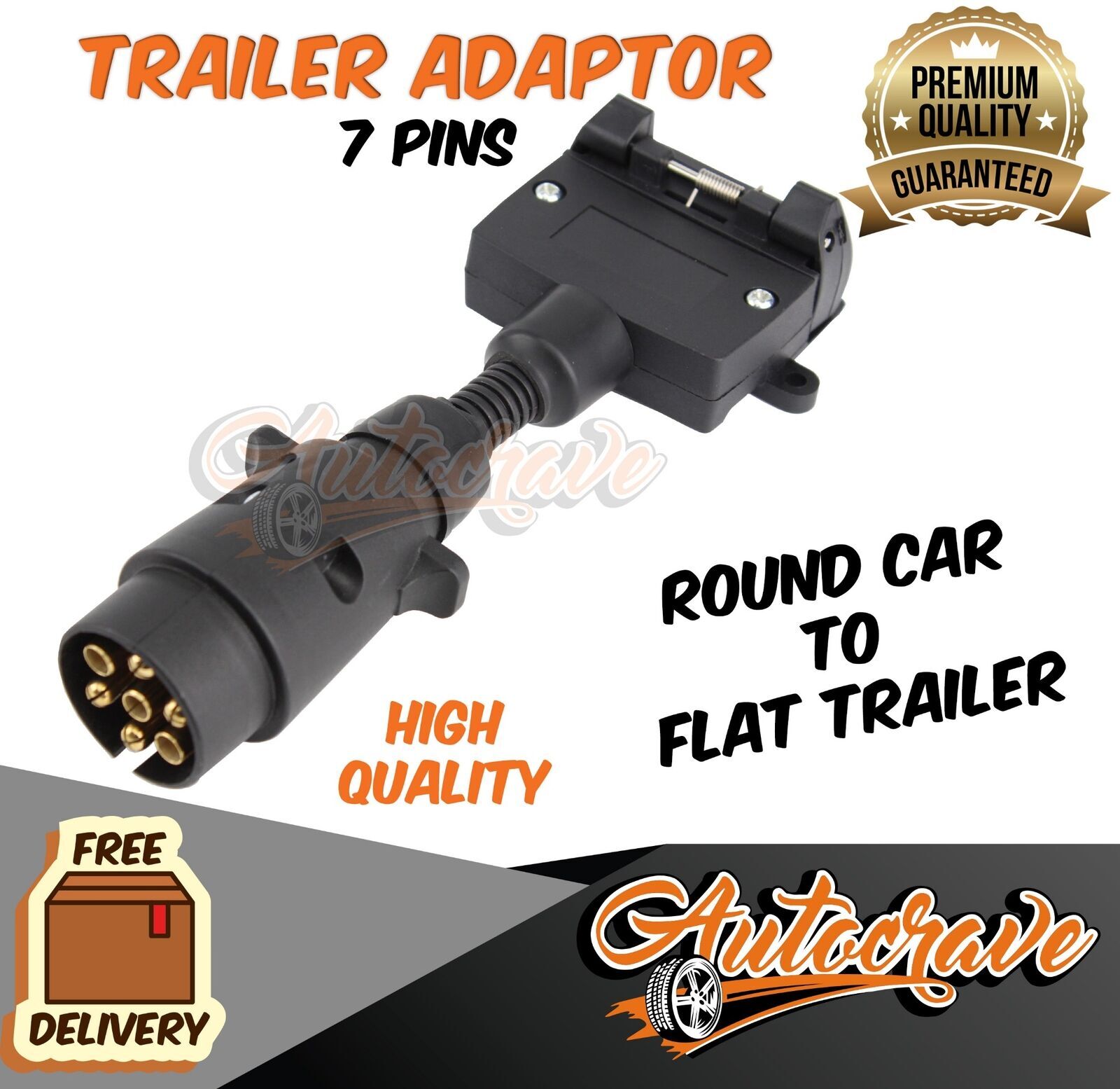 Trailer Adapter Plug 7 Pin Round Male To Flat Female, Caravan, Boat Connector