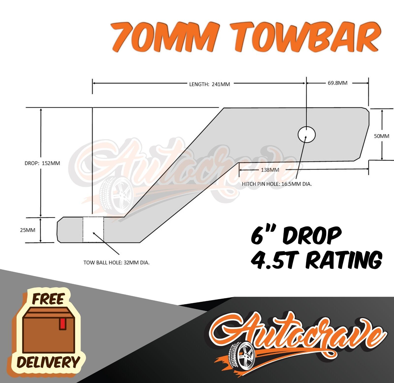 Trailer Car Tow Bar Tongue 6" Drop Suit 70mm Tow Ball 4.5T Rating Mister Hitches