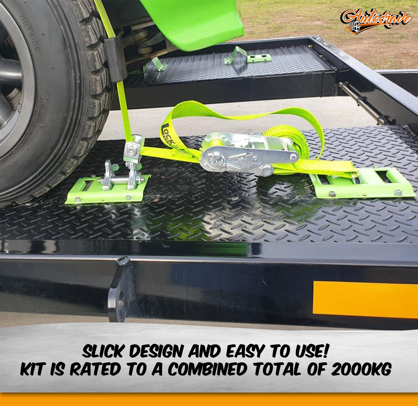 • This kit features a 50mm x 3.65m strap length with a 1000kg lashing capacity per strap for a total of 2000kg!
