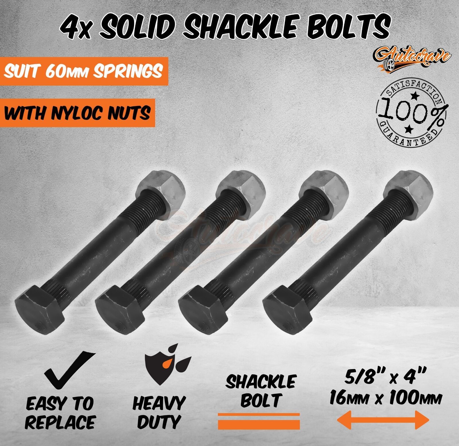 X4 Solid Shackle Bolt 5/8" Rocker Roller Spring 16mm Pin Caravan Trailer Nyloc